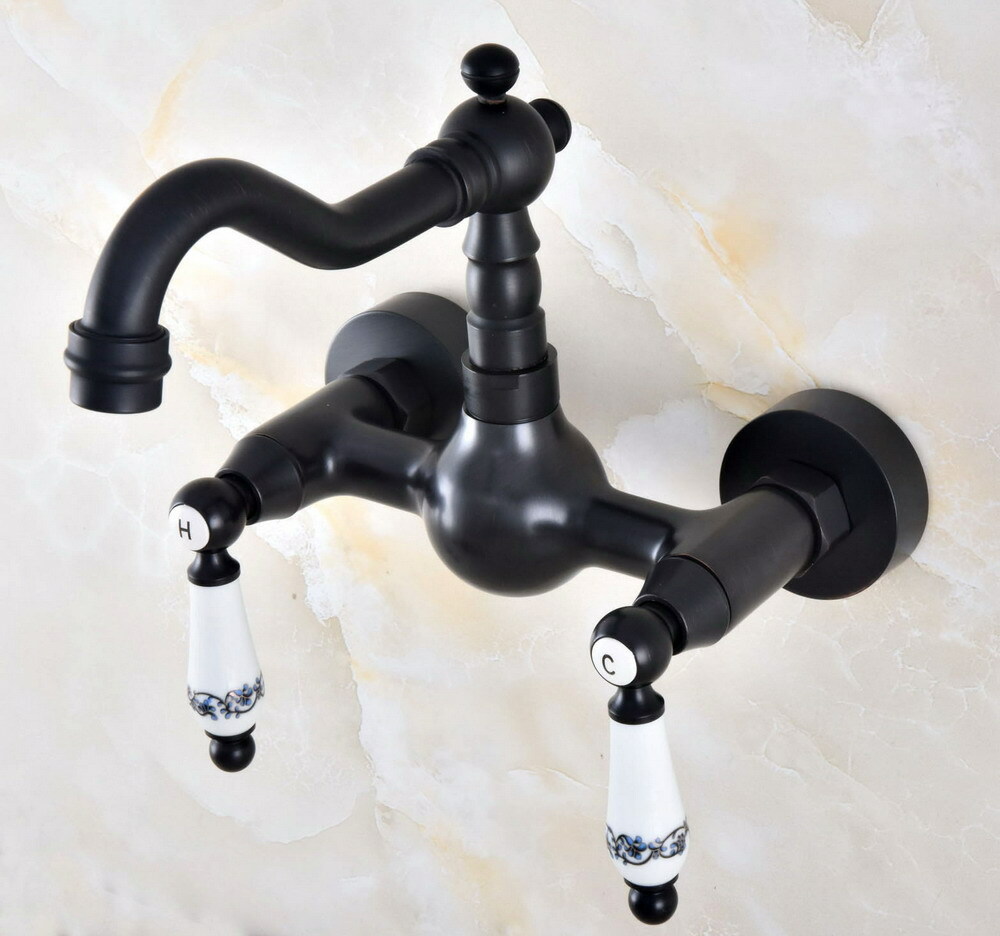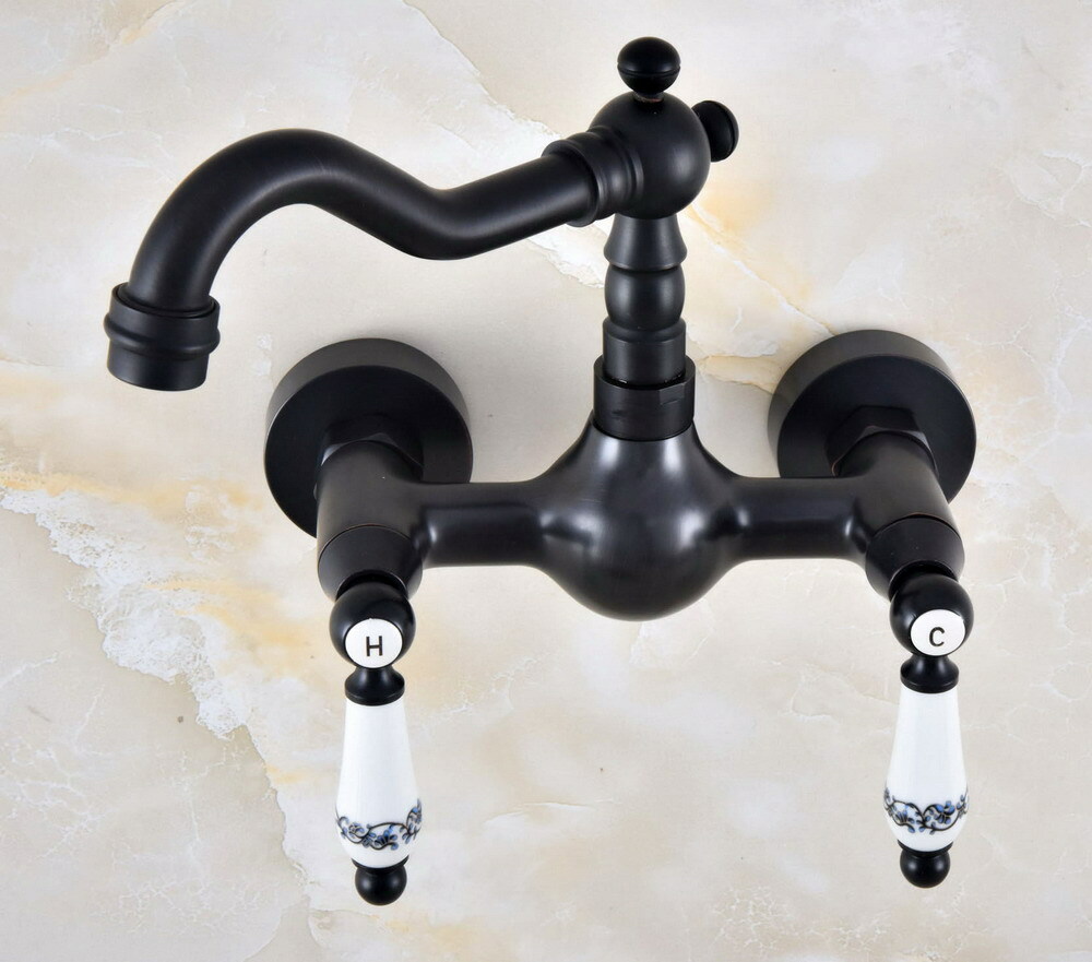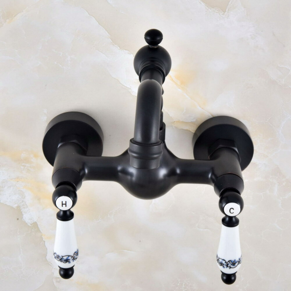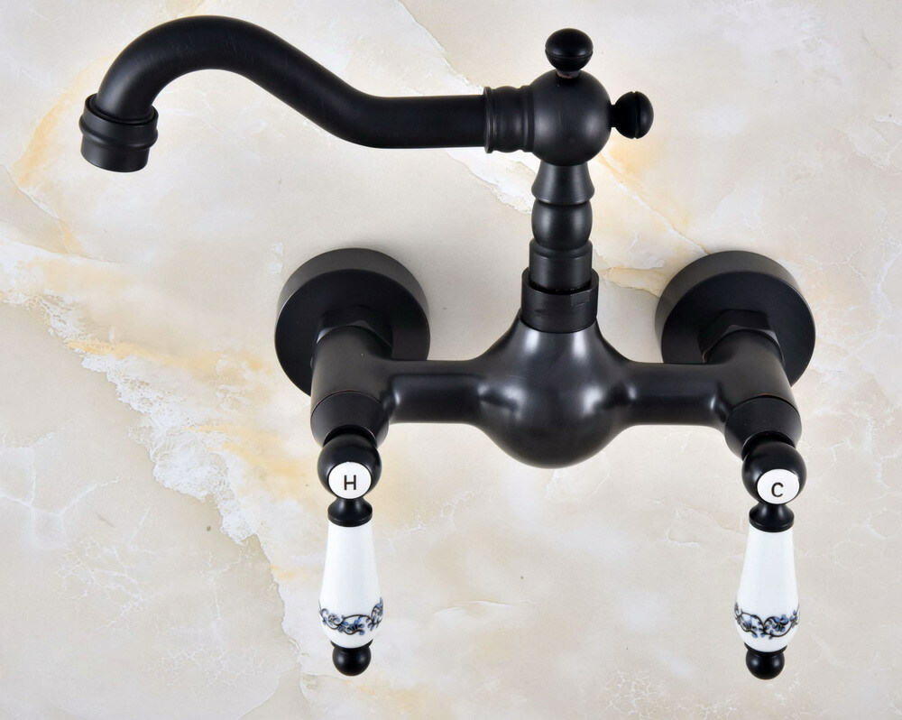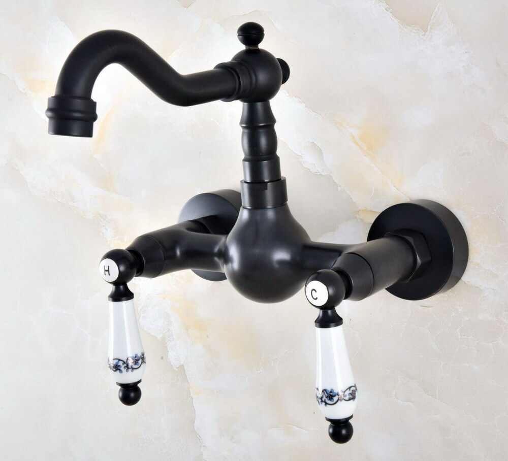 Oil Rubbed Brass Wall Mount Kitchen Bathroom Sink Faucet Mixer Tap 2nf859
