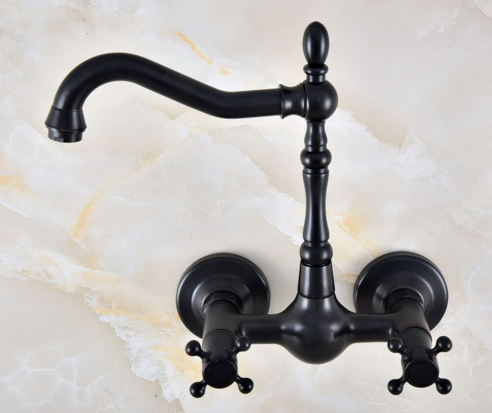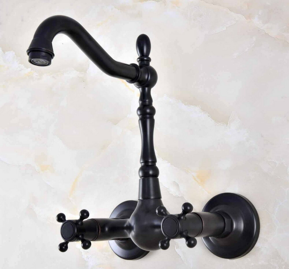Black Oil Rubbed Brass Wall Mount Kitchen Bathroom Sink Faucet Mixer Tap 2nf855