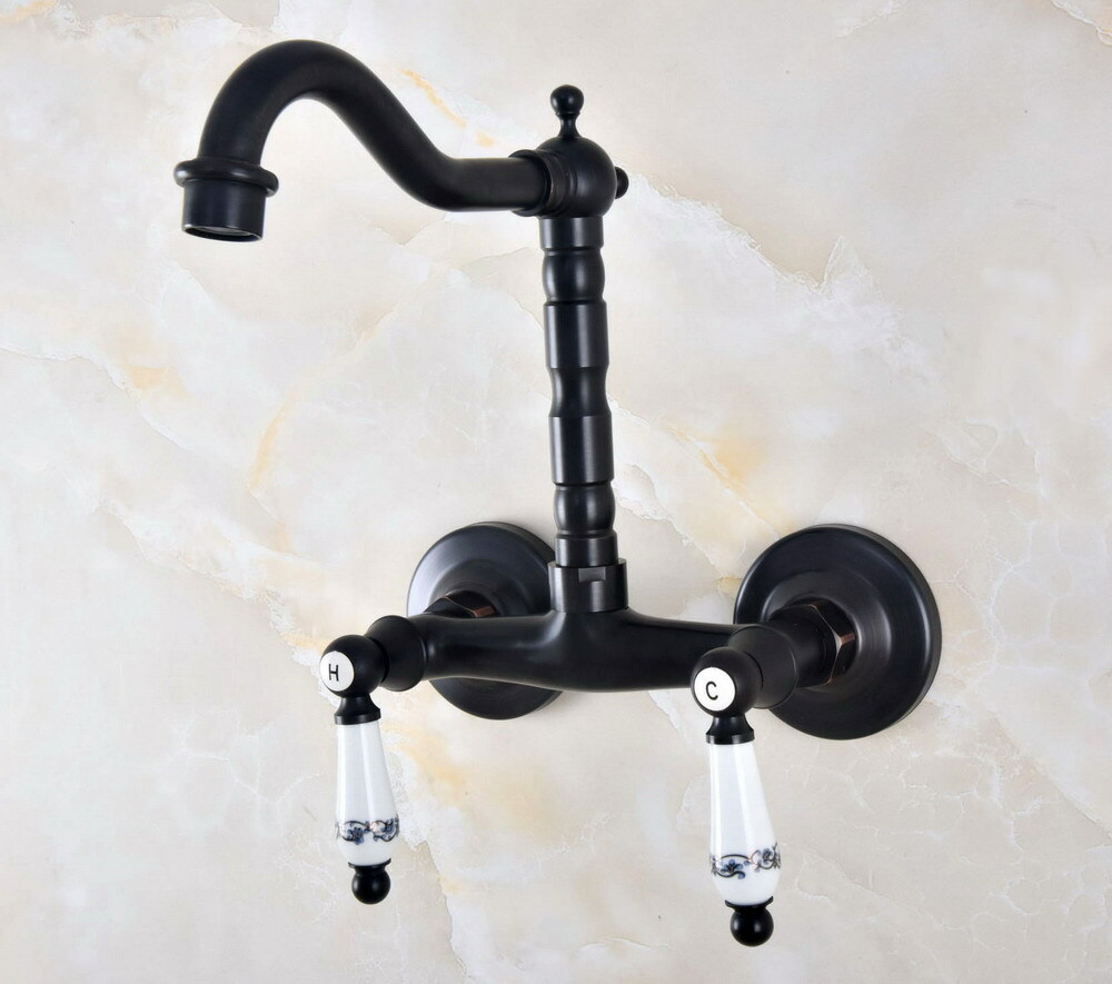 как выглядит Swivel Black oil Antique Brass Kitchen Bathroom Sink Faucet Mixer Tap 2nf833 фото