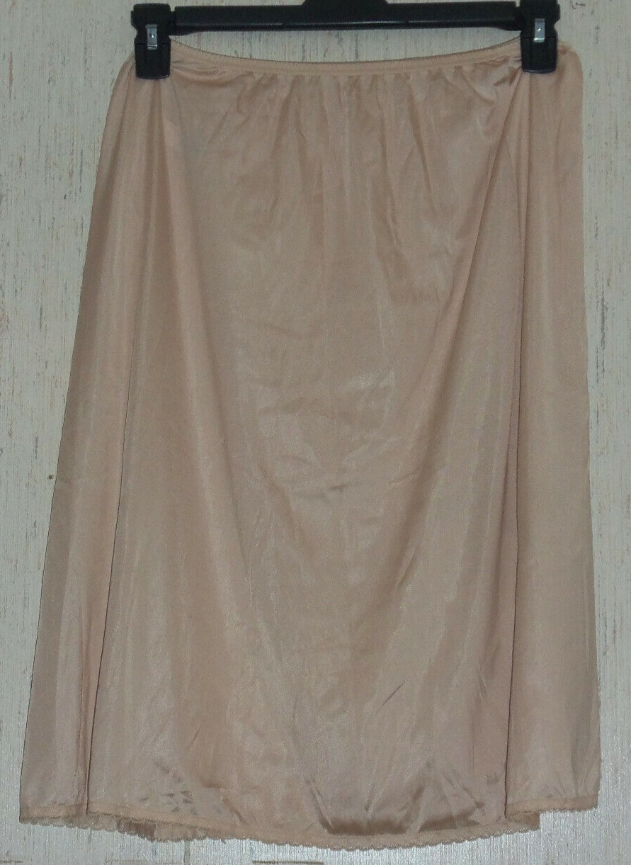 как выглядит EXCELLENT WOMENS OLGA 26" BEIGE HALF SLIP SIZE L STYLE 12007 NO SLITS фото