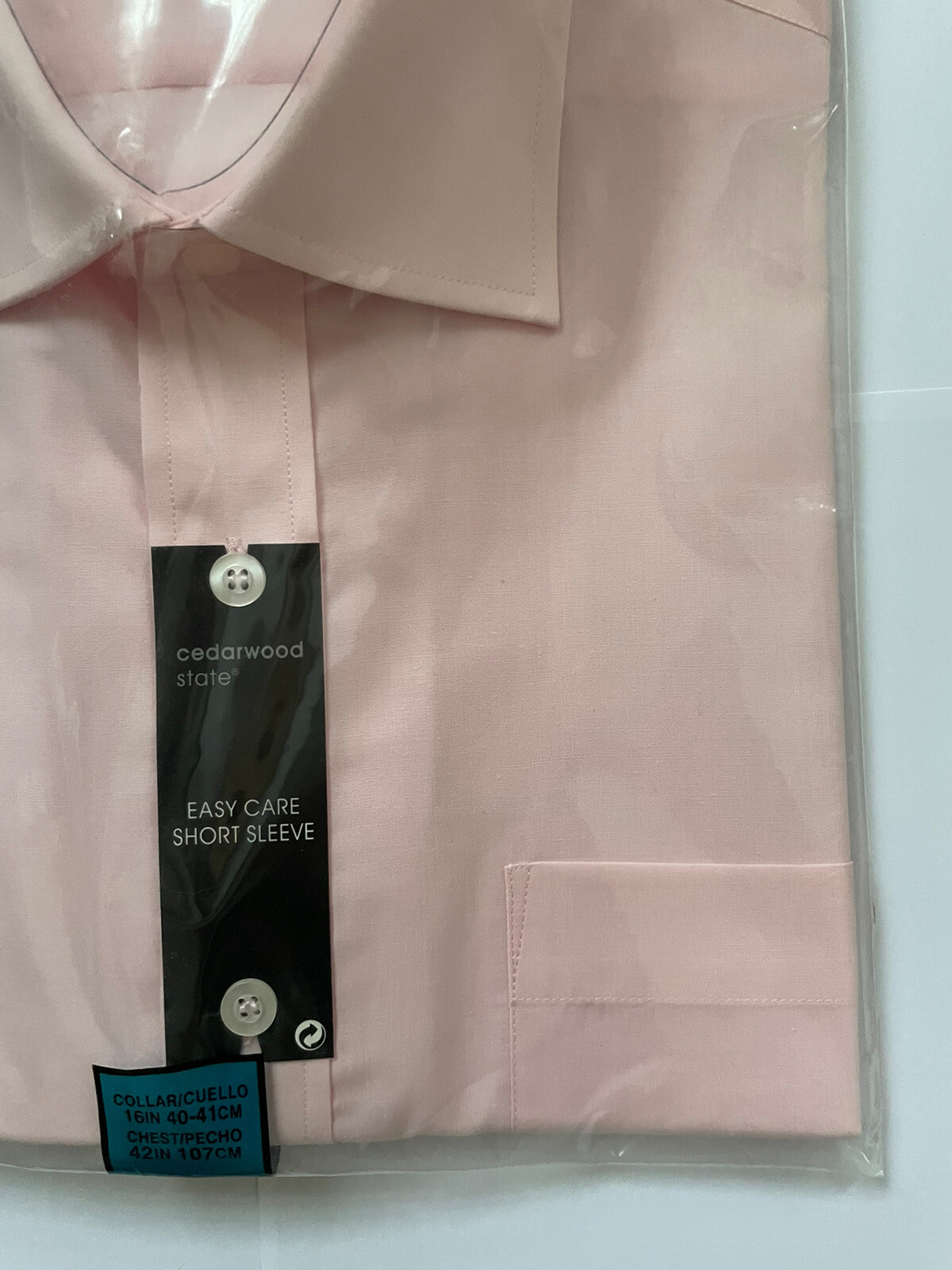 как выглядит PALE PINK SHORT SLEEVE FORMAL BUSINESS SMART PARTY SHIRT CHEST 42 INCH LARGE NEW фото