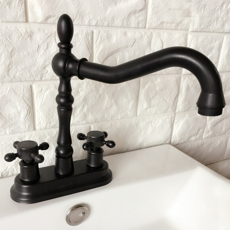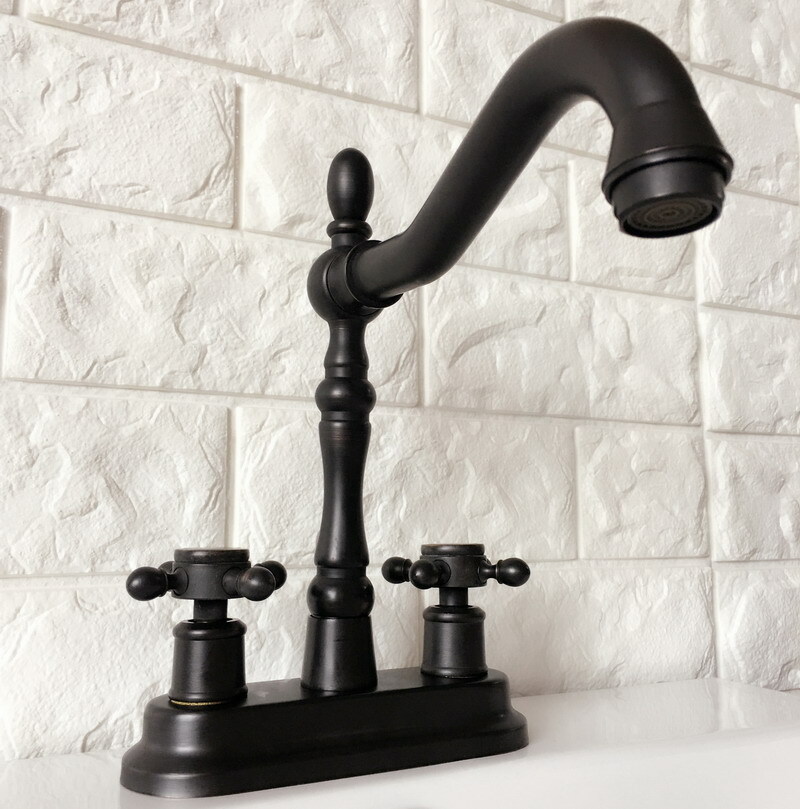 как выглядит Black oil Antique Brass Kitchen Bathroom Sink Vessel Faucet Mixer Tap 2hg077 фото