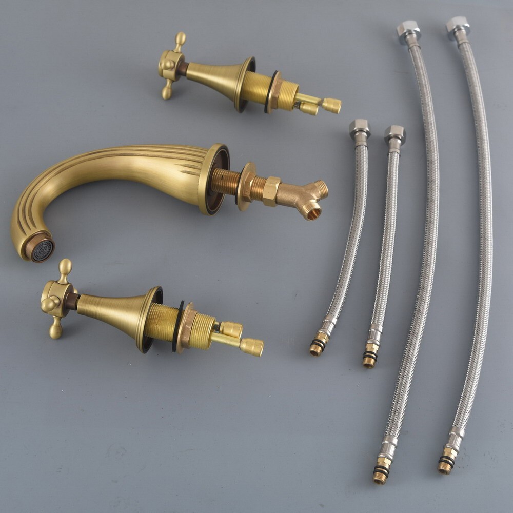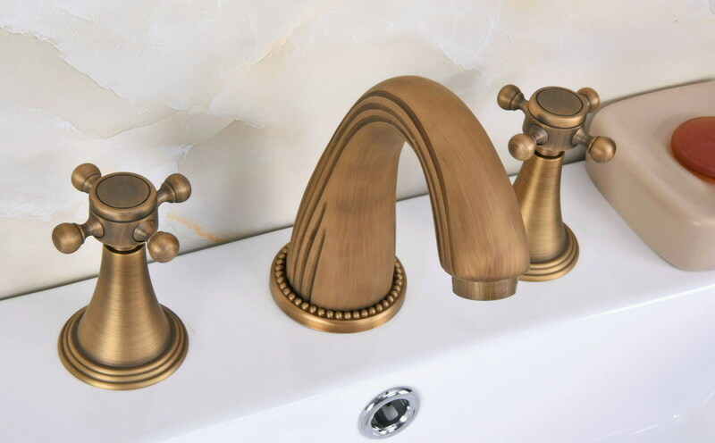 как выглядит Antique Brass Deck Mount 3 Hole Widespread Bathroom Sink Faucet Mixer Tap 2an089 фото