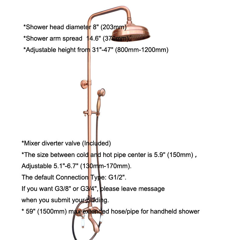 Antique Red Copper Bathroom Rainfall Shower Faucet Set Wall Tub Mixer Tap 2rg561