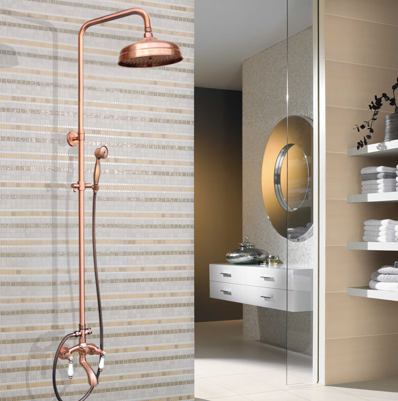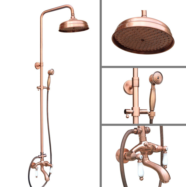 как выглядит Antique Red Copper Bathroom Rainfall Shower Faucet Set Wall Tub Mixer Tap 2rg561 фото