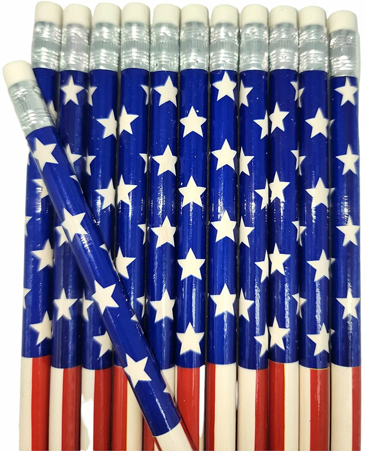 Patriotic Vintage Look American US Flag 2 Lead Wooden 7.5 Pencils 12 Pack