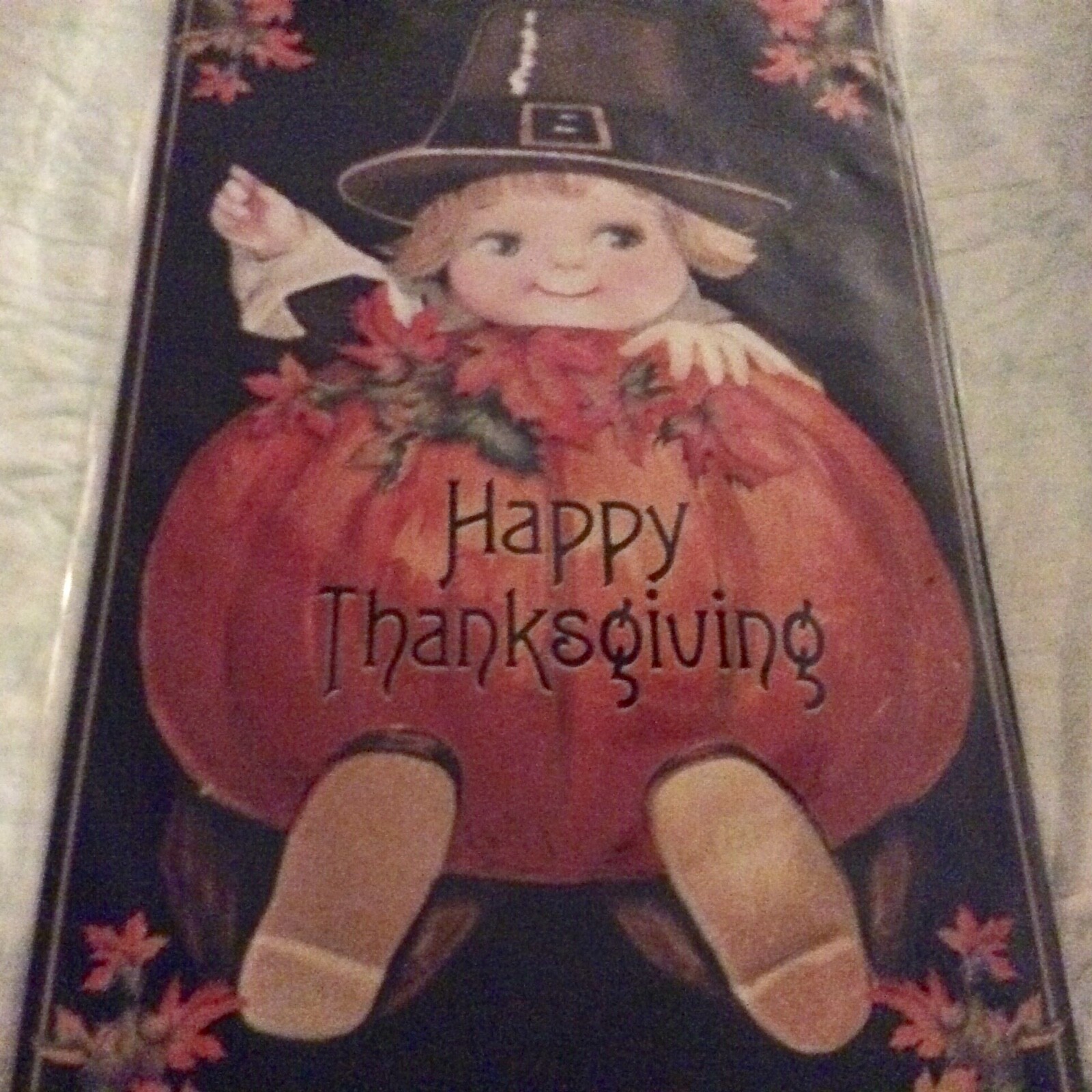как выглядит New in Plastic...METAL Happy Thanksgiving Pilgrim Boy Sign фото
