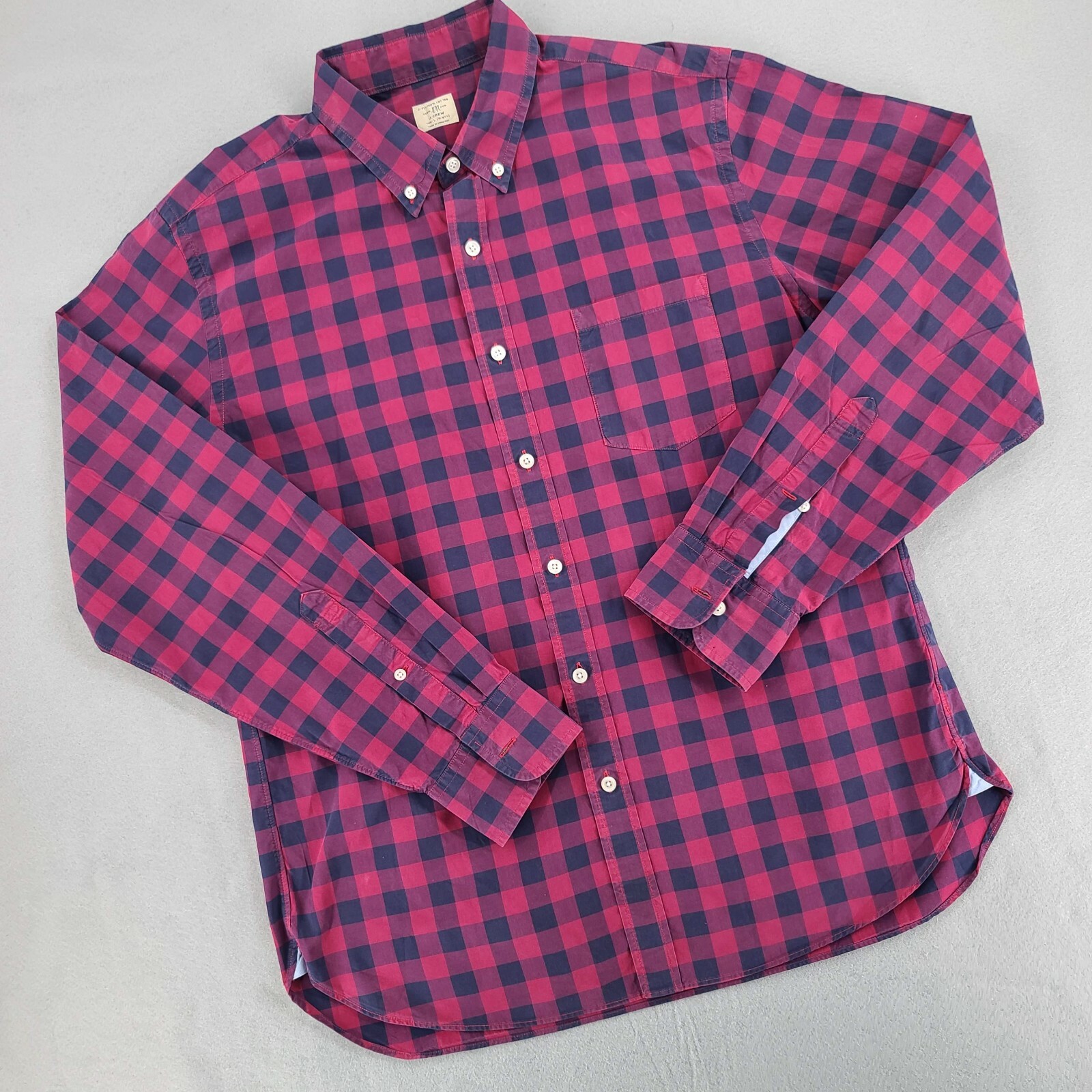 J Crew 2-Ply 100 Cotton Men's Large Red Check Long Sleeve Button-Down Collar