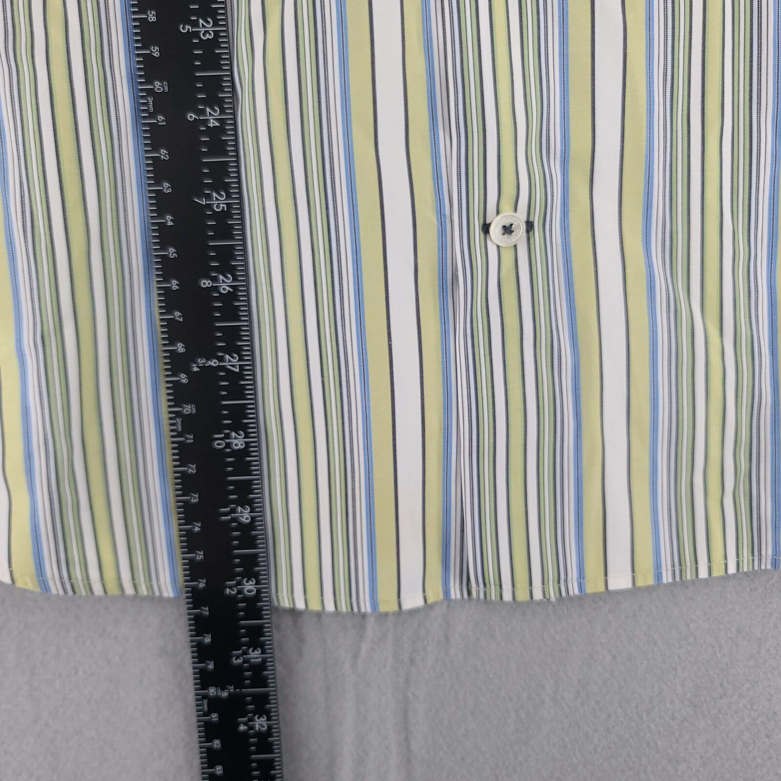 как выглядит Banana Republic Mens Large Multicolored Blue Yellow Striped Spread Long Sleeve фото