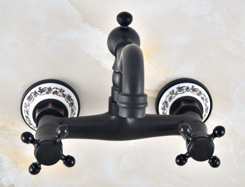 как выглядит Wall Mount Black oil Antique Brass Kitchen Bathroom Sink Faucet Mixer Tap 2nf817 фото