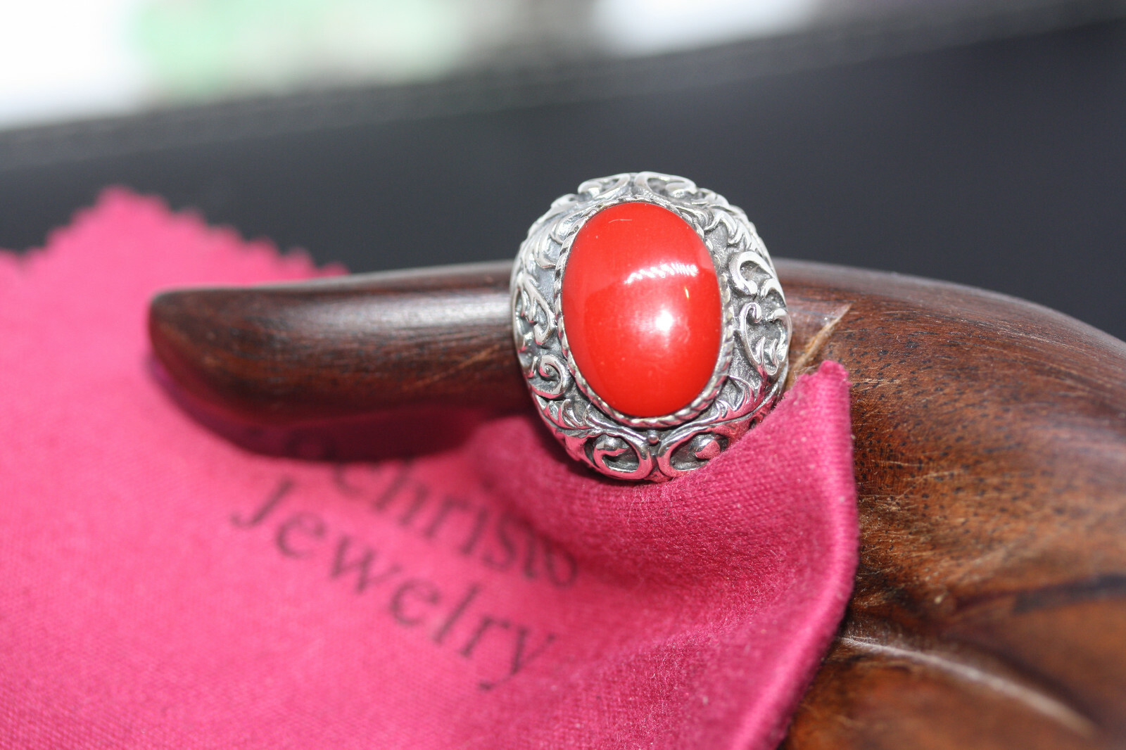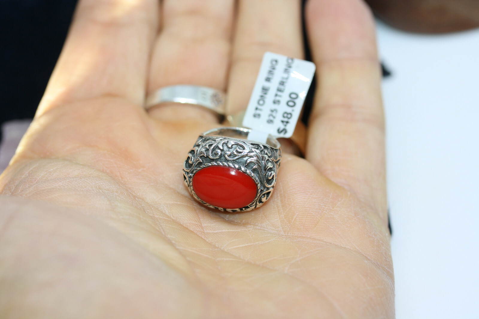как выглядит NEW MEXICAN DESIGNER 8 ctw OVAL CABOCHON JASPER 925 STERLING SILVER RING SZ 5.5 фото