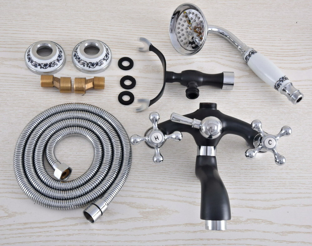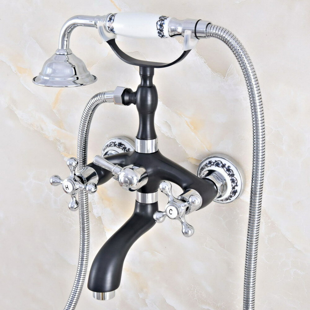 Silver Black Brass Bathtub Filler Faucet Hand Spray Shower Set Mixer Tap 2na605