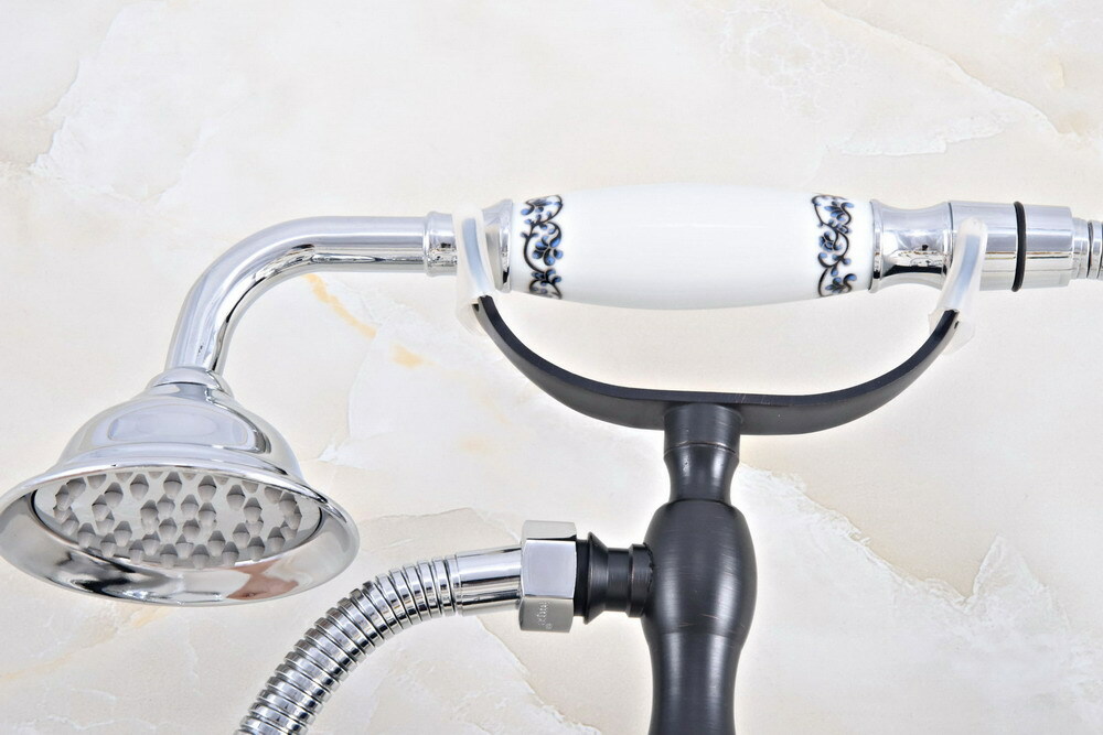 как выглядит Silver Black Brass Bathtub Filler Faucet Hand Spray Shower Set Mixer Tap 2na605 фото