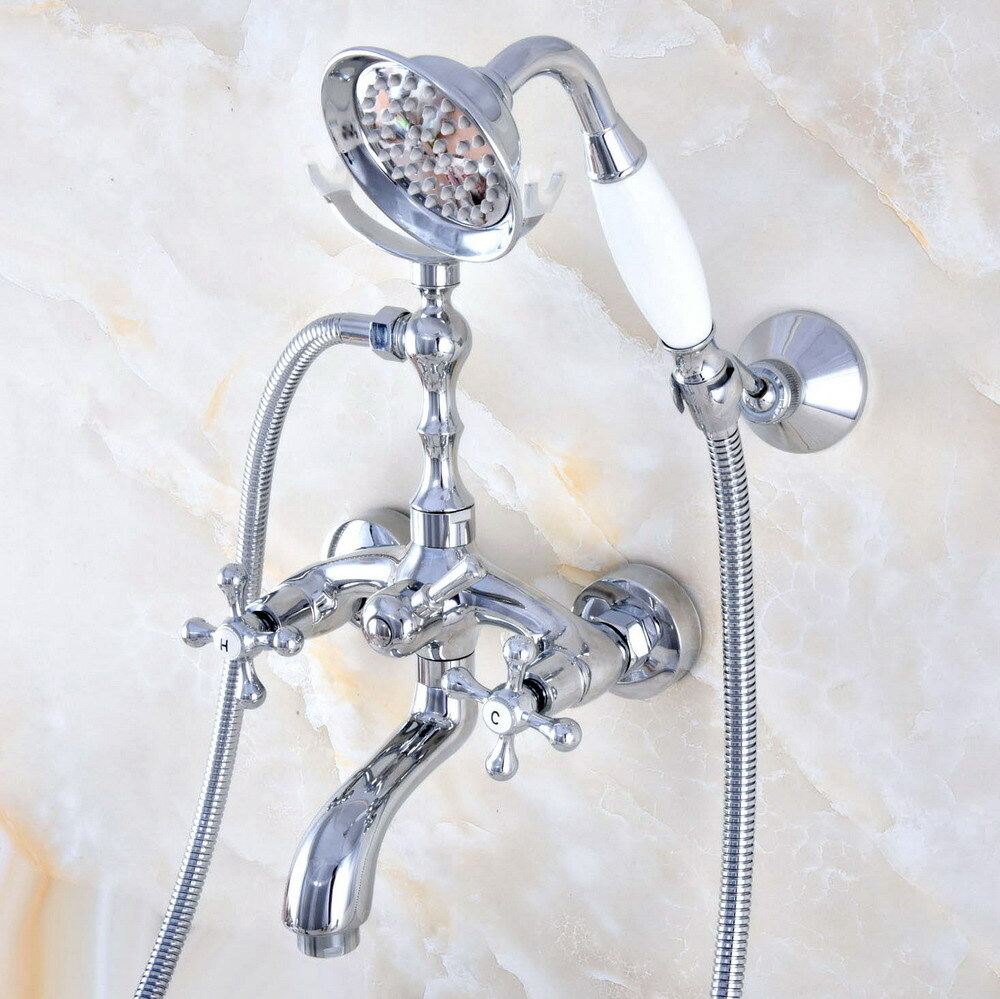 Chrome Brass Bathtub Filler Faucet Set W/ Handheld Spray Shower Mixer Tap 2na760