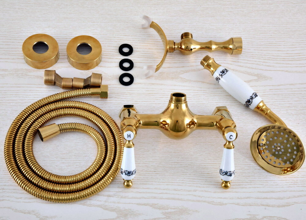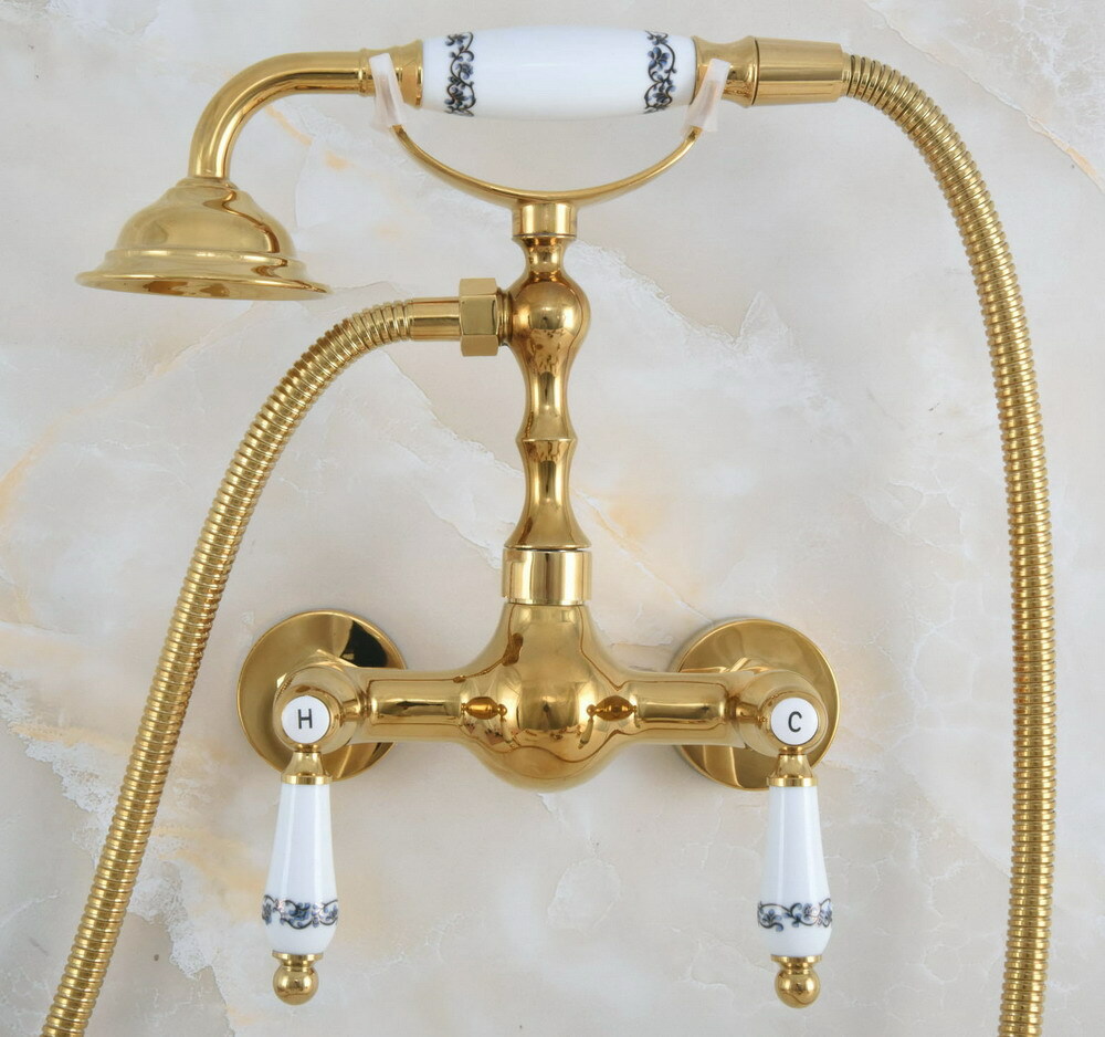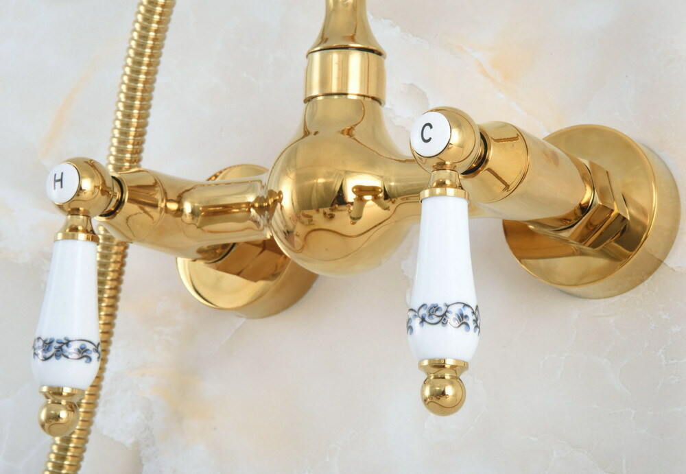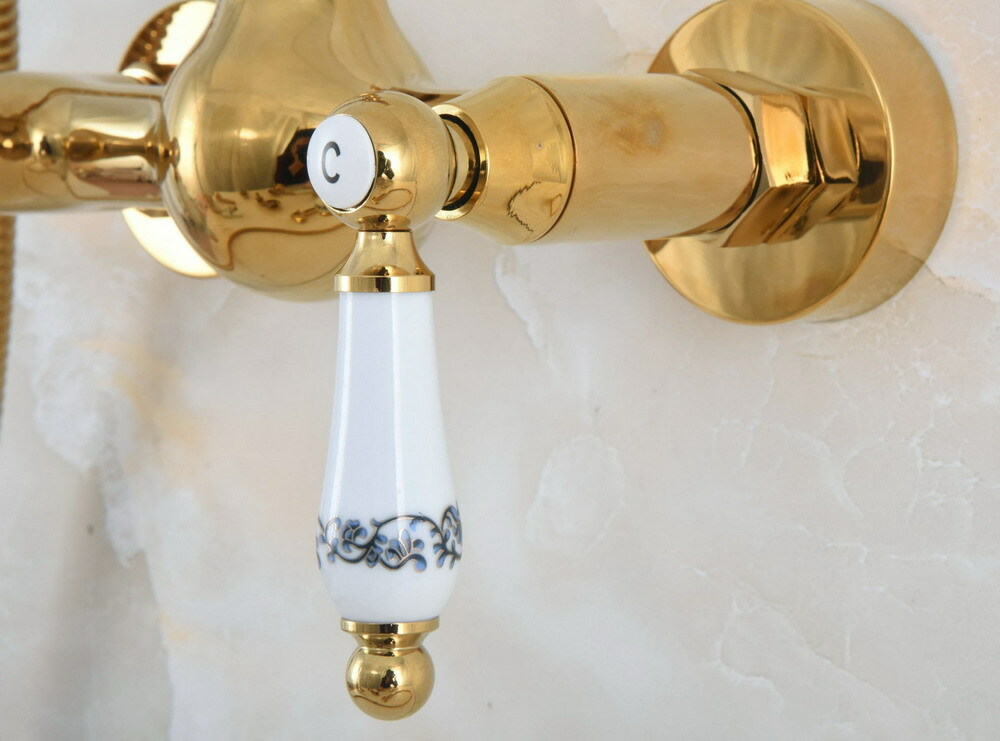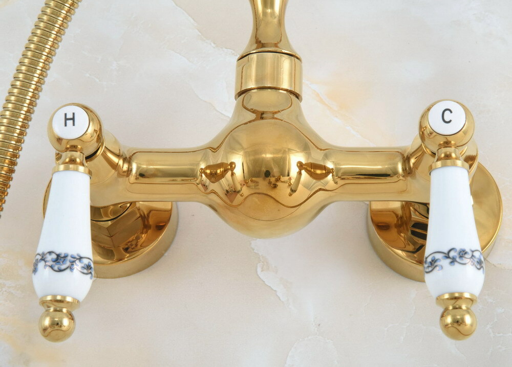 Wall Mount Golden Brass Bathroom Hand Spray Shower Mixer Faucet Set Tap 2na934