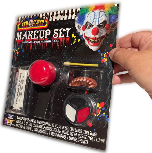 EVIL CLOWN MAKEUP SET Red Nose Fangs Teeth Sponge White Fake Blood Kit Halloween