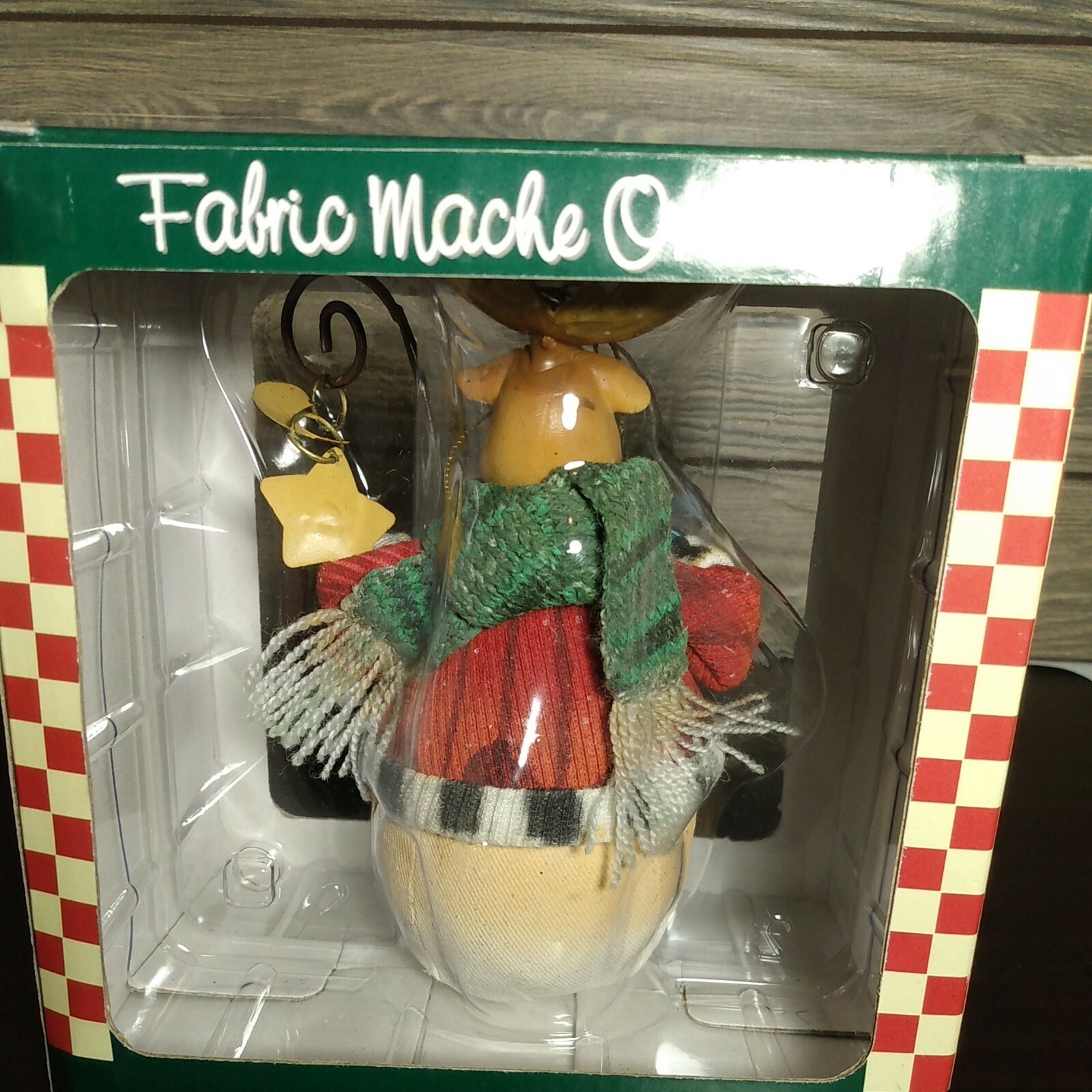 FABRIC MACHE CHRISTMAS ORNAMENT MOOSE / REINDEER WITH PRESENT