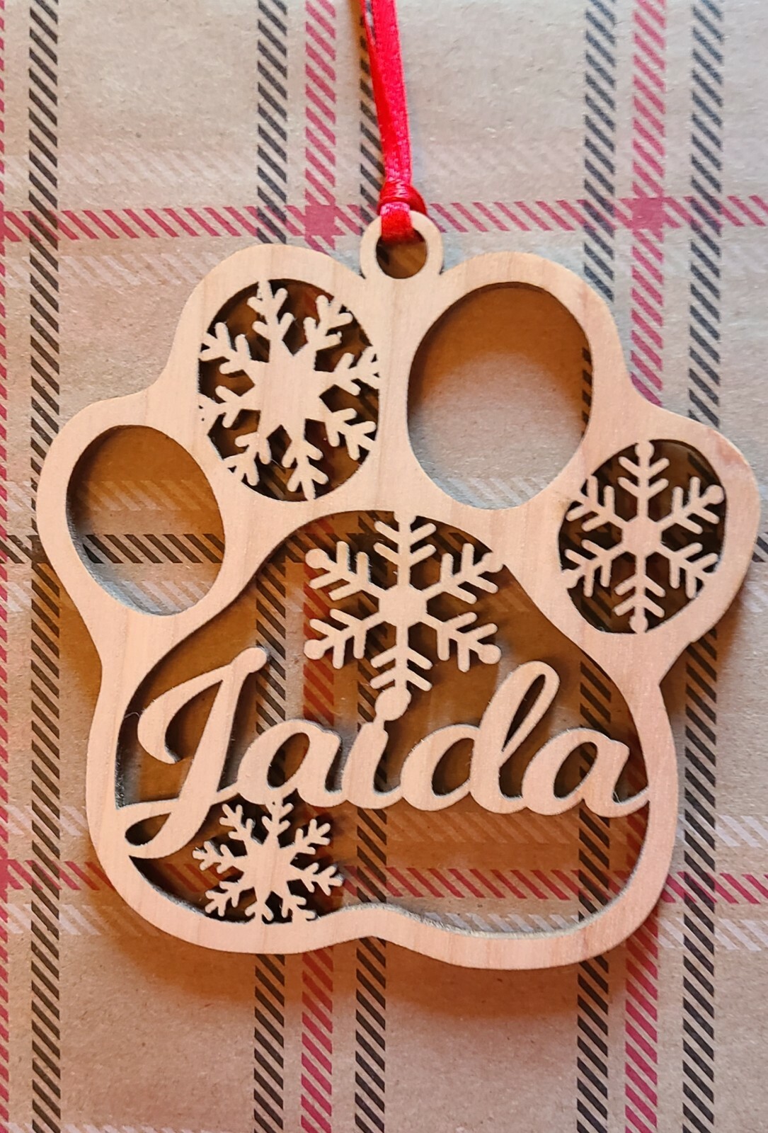 как выглядит Personalized Paw Print Shaped Wooden Pet Christmas Ornament фото
