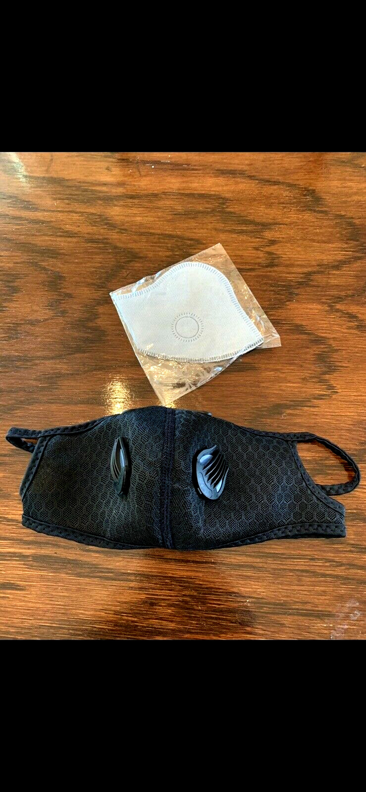 2 Black Masks, with Exhalation Valves Multi-Layered, Easy Breathing