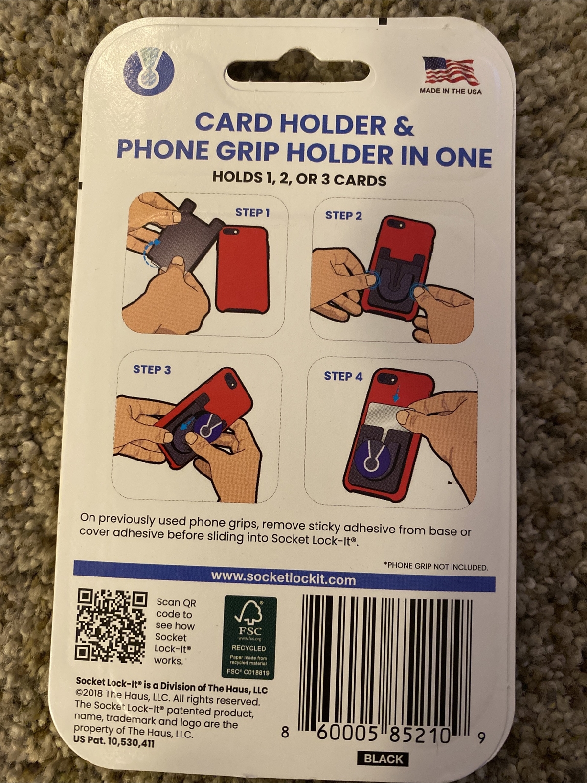 NEW Socket Lock-It Adhesive Card Holder Phone Grip Holder in One