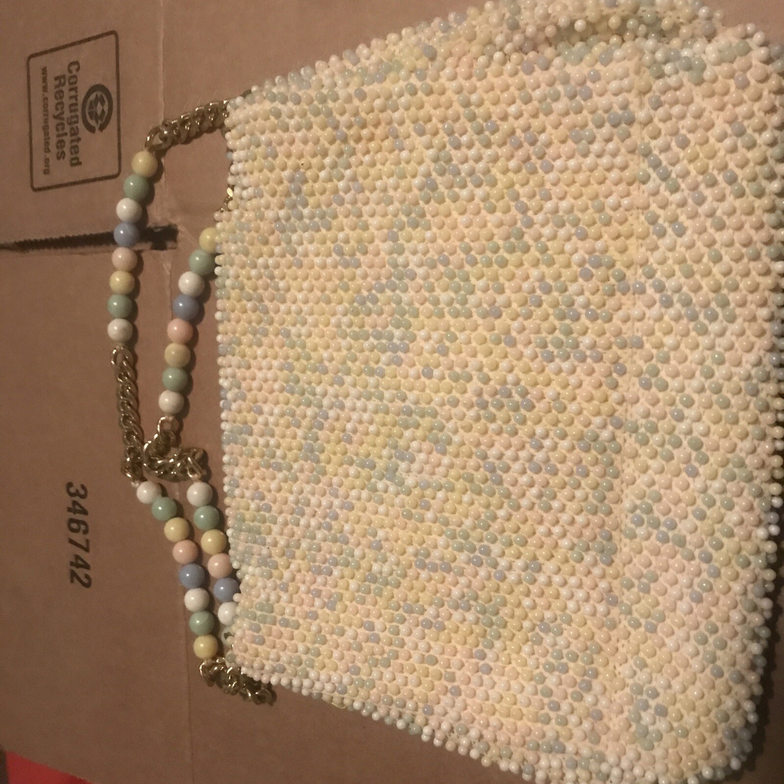 как выглядит Vintage Beaded Evening Purse w/ Chain Bead Handle W/ Clasp фото