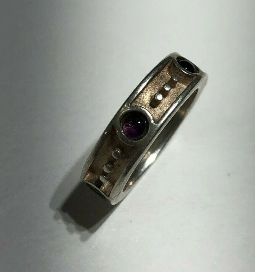 как выглядит Purple Stones Ring Band Sterling Silver .925 Size 5 фото