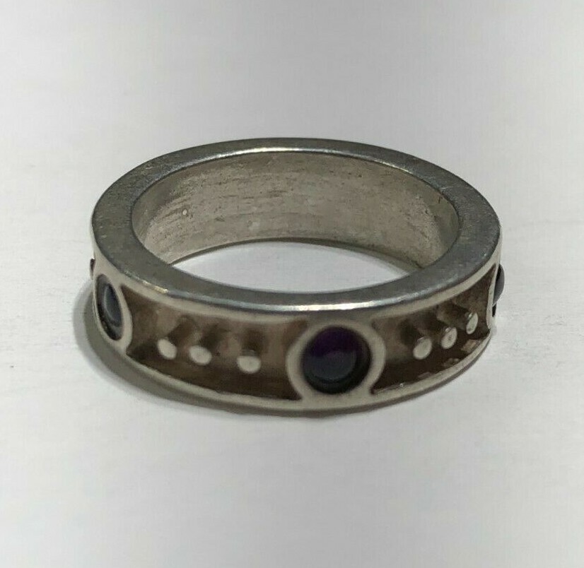 Purple Stones Ring Band Sterling Silver .925 Size 5