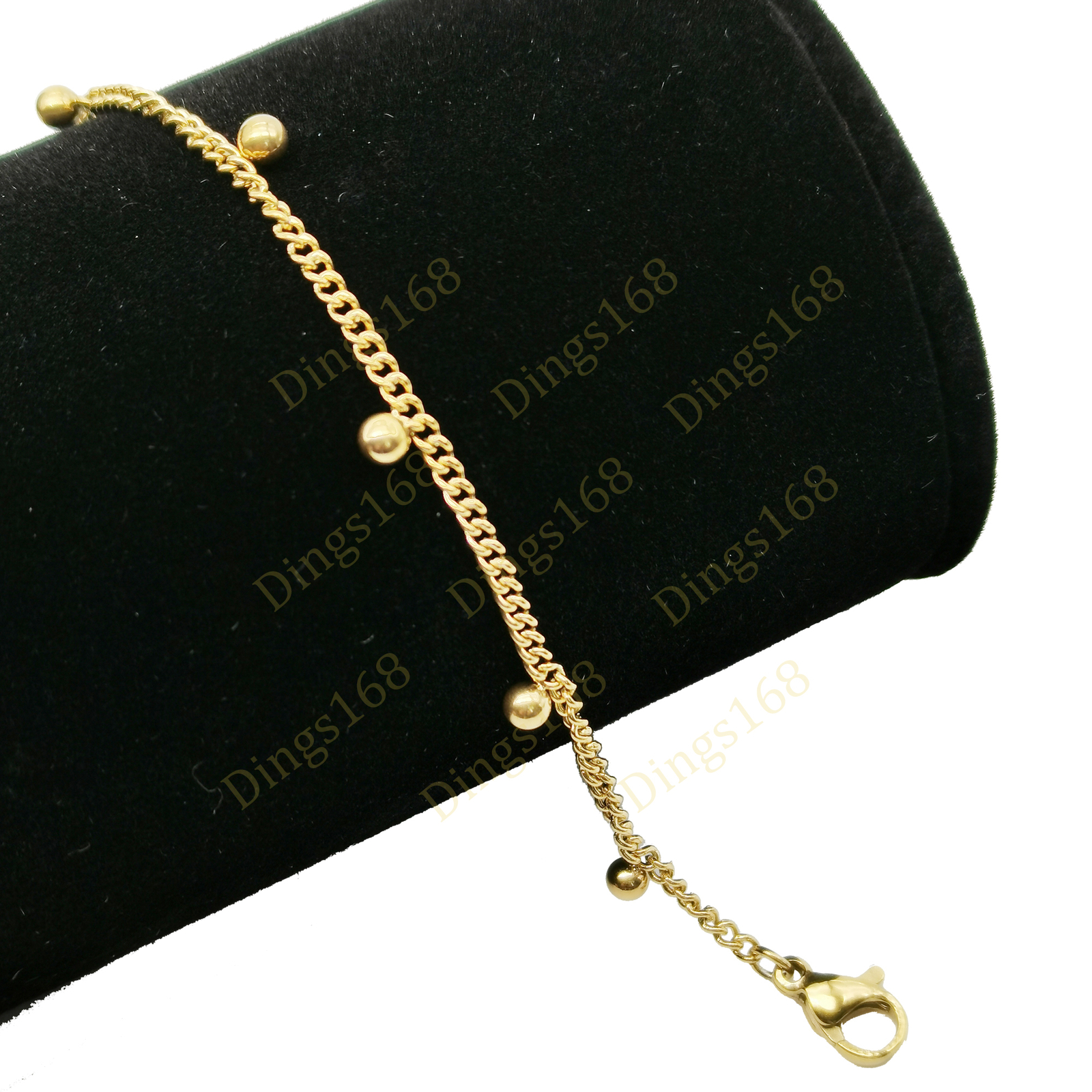18K Yellow Gold Filled Tarnish-Free Italian 3mm Beaded Curb Chain Bracelet C277