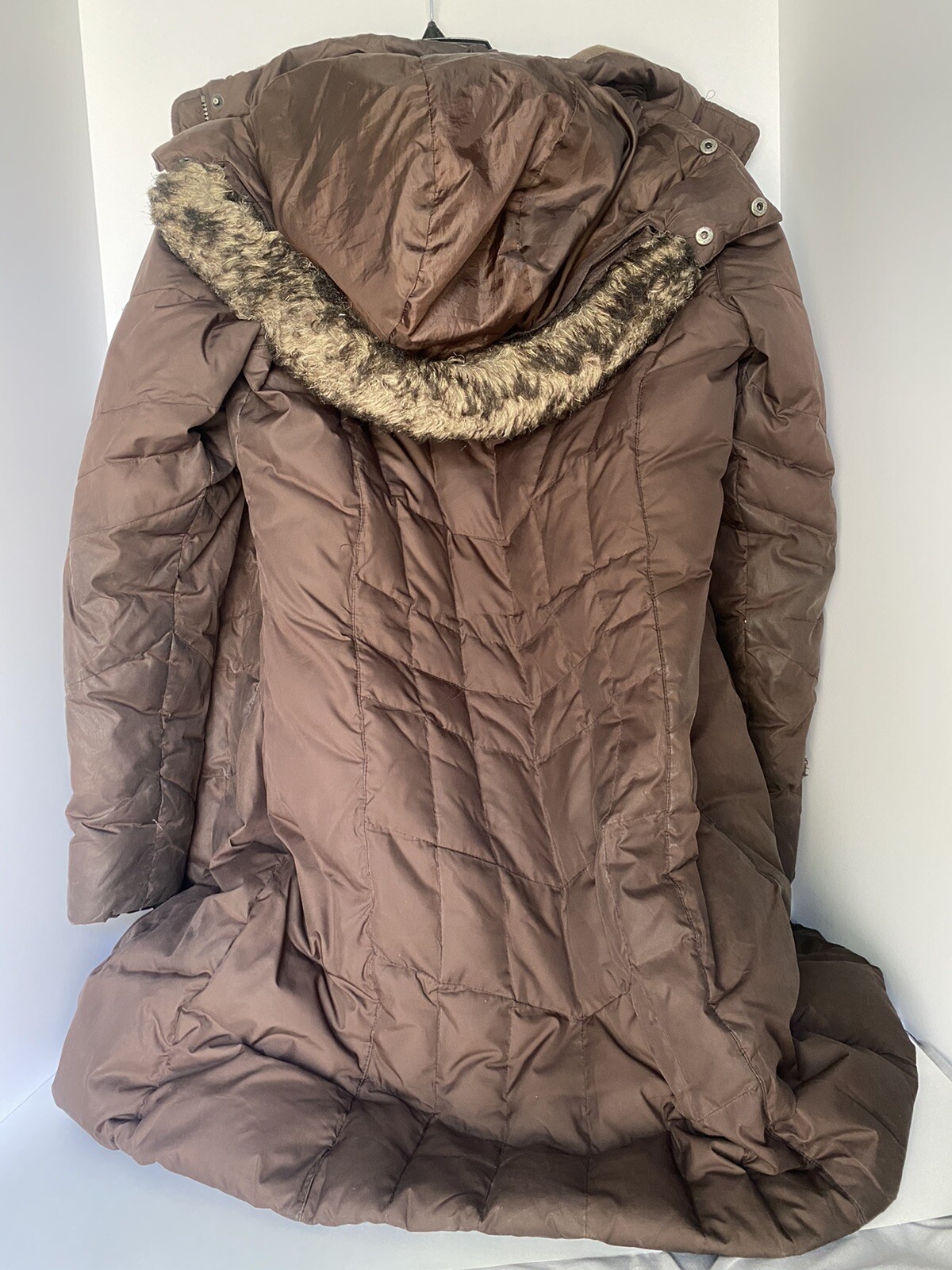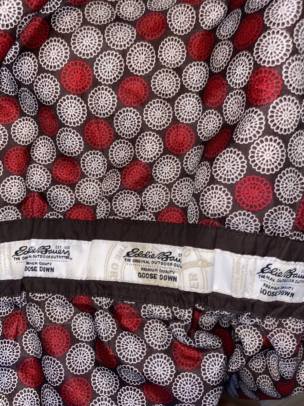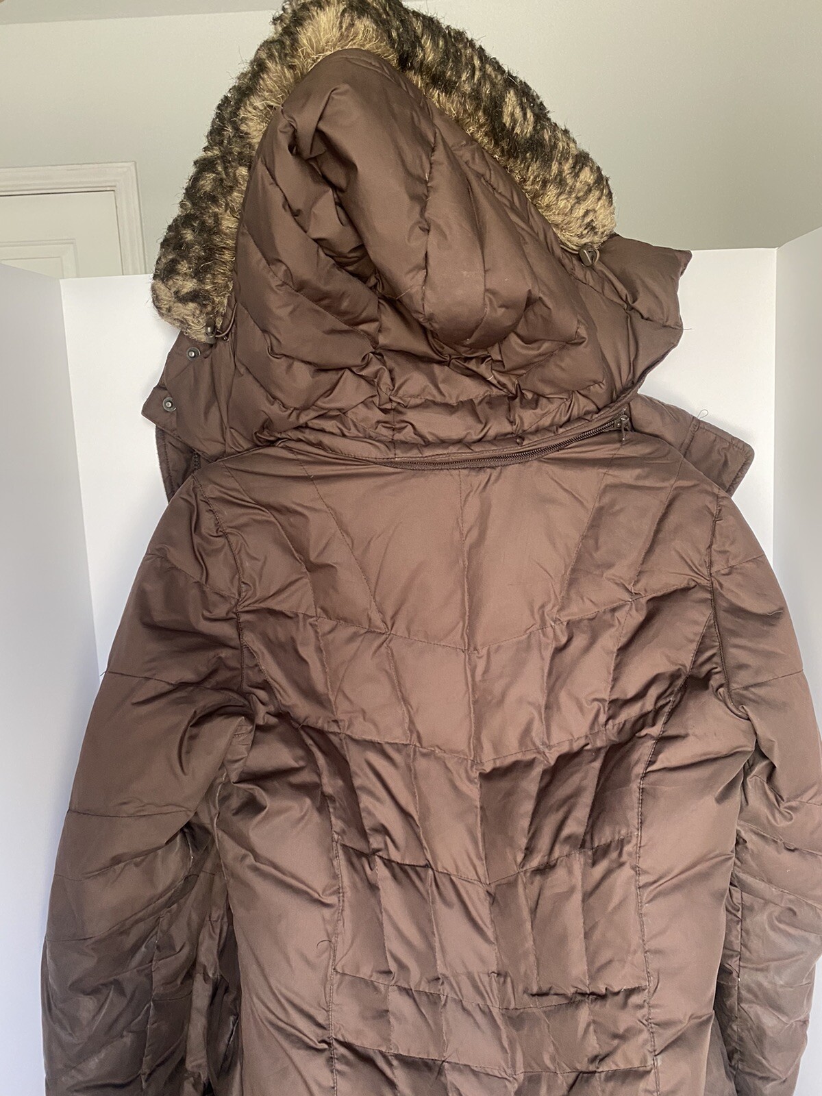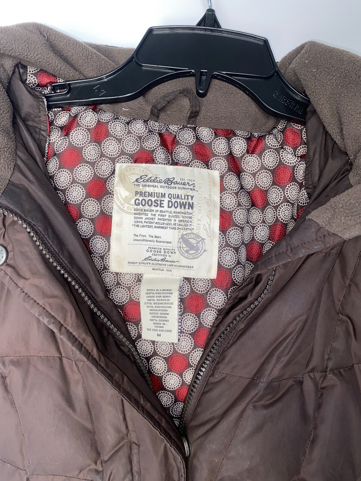как выглядит Eddie Bauer Womens size M premium goose down jacket hoodie dark brown фото