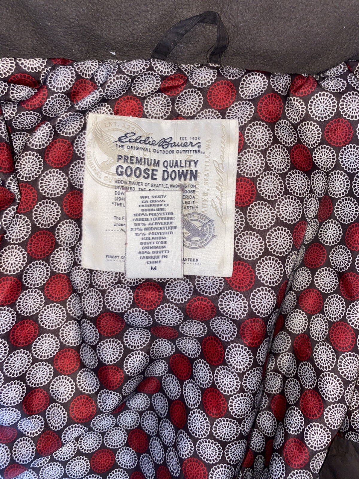 Eddie Bauer Womens size M premium goose down jacket hoodie dark brown