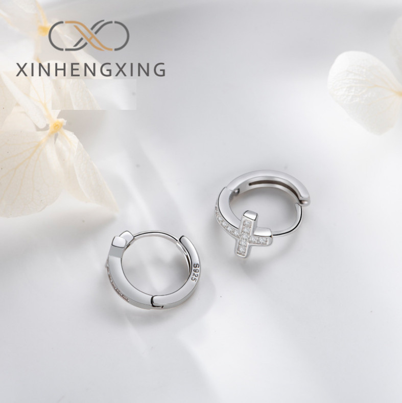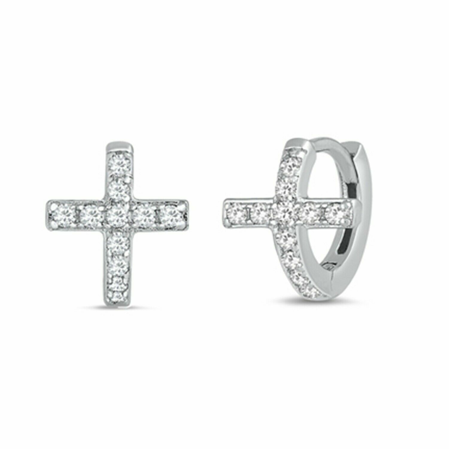925 Sterling Silver Cz Cross Huggie Hoop Earrings 13mm Men Women Snap Gift I88