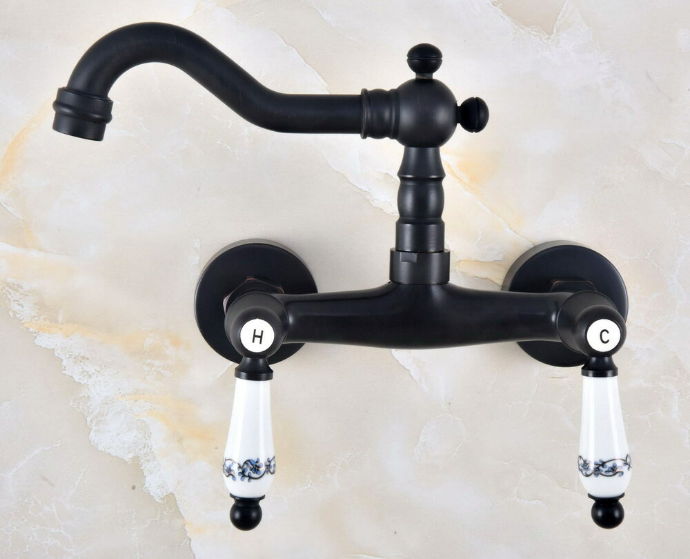 Double Handle Swivel Spout Basin Faucet Bathroom Kitchen Sink Taps Brass 2nf828