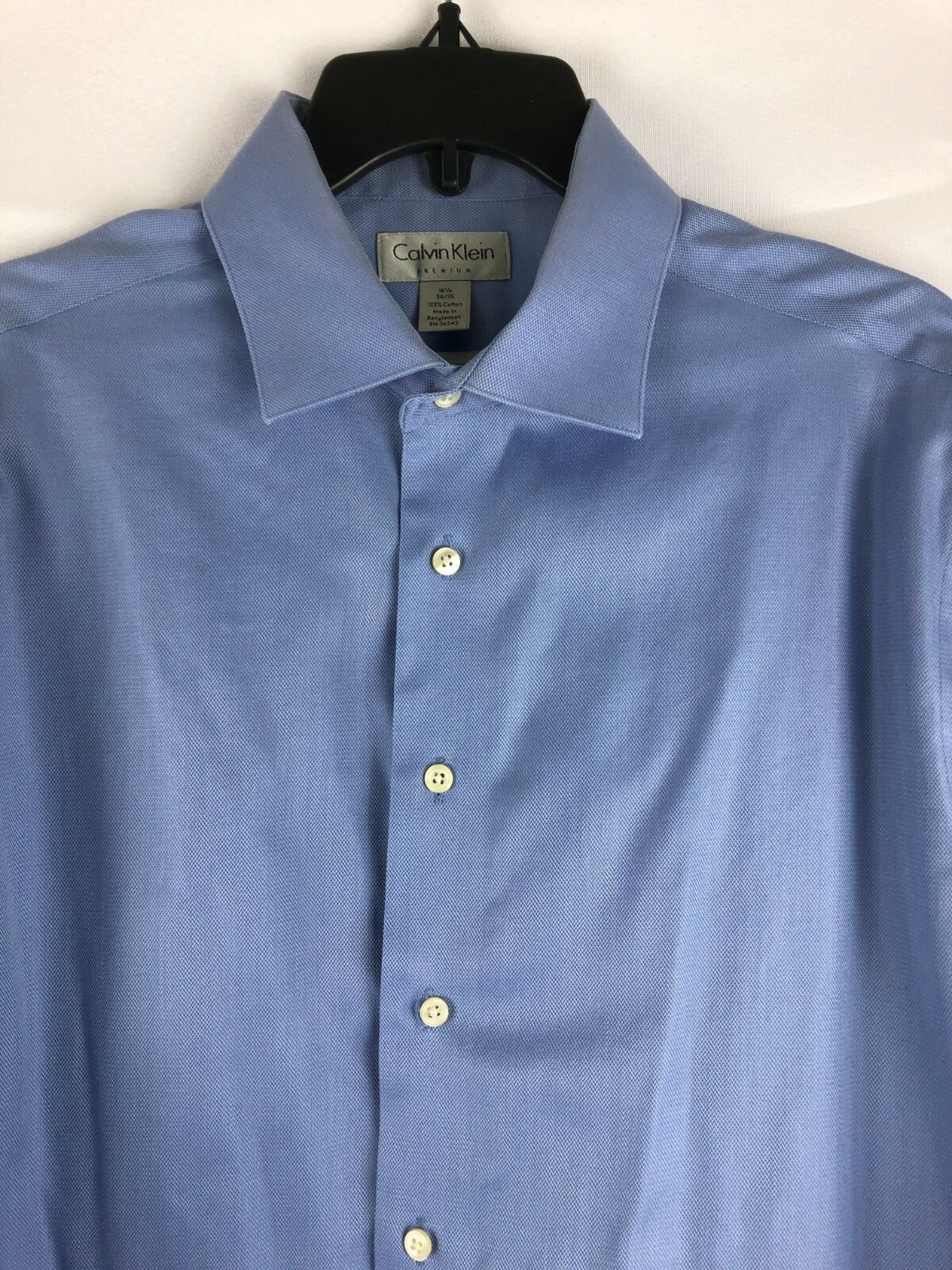 Calvin Klein Button Up Long Sleeve Dress Shirt Mens Size 16 1/2 34/35 Blue
