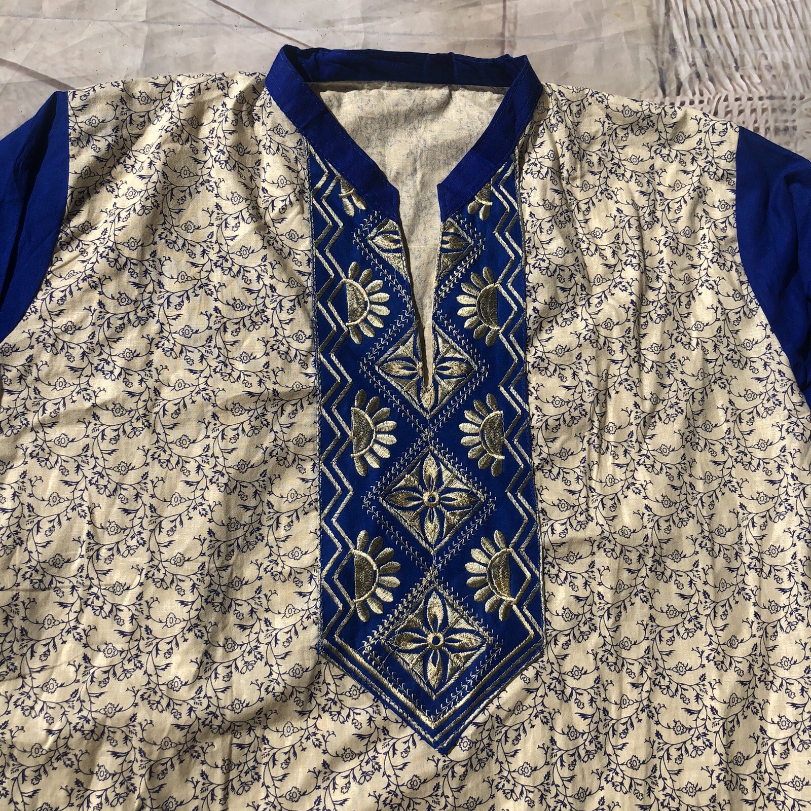 как выглядит blue and cream kurti indian embroidered tunic фото