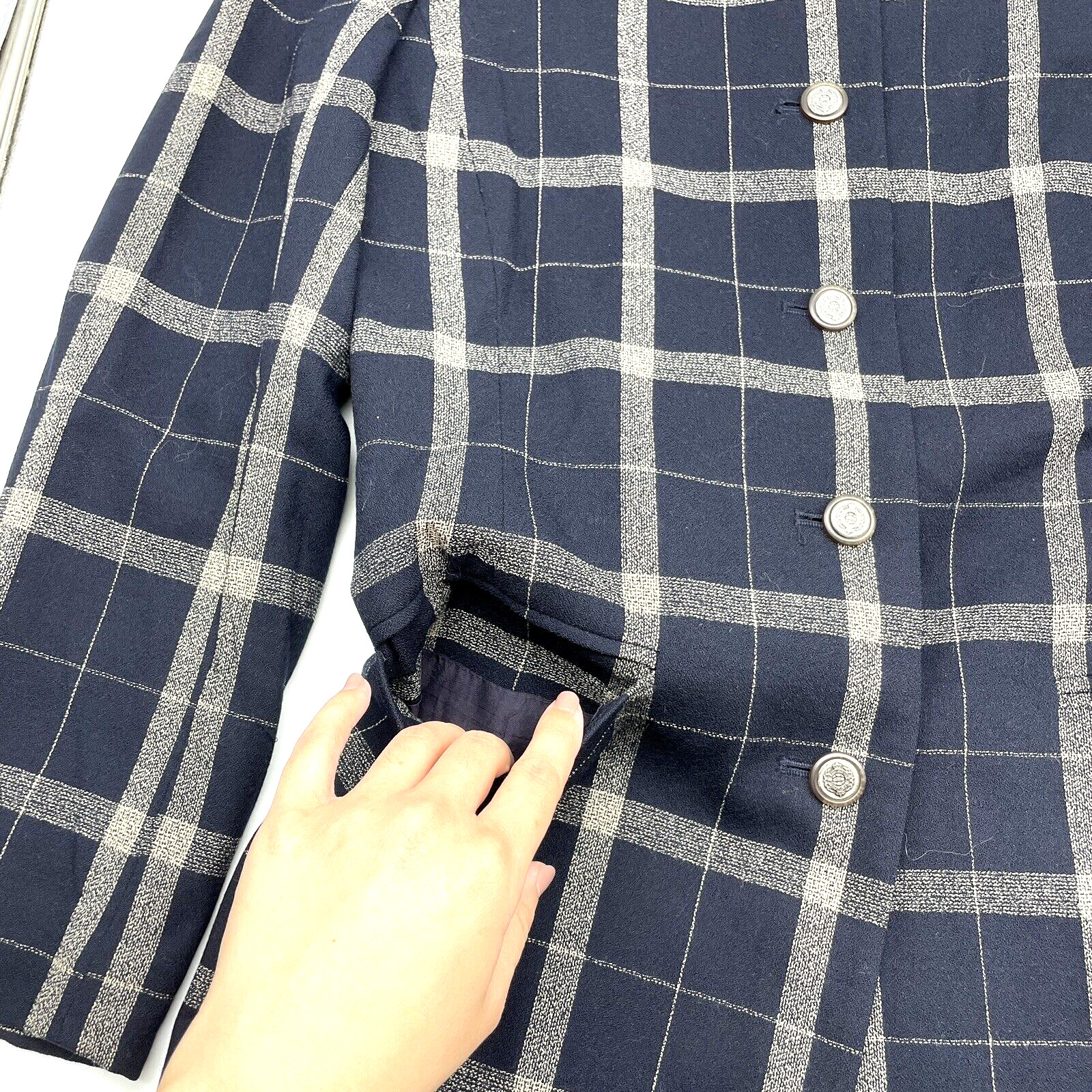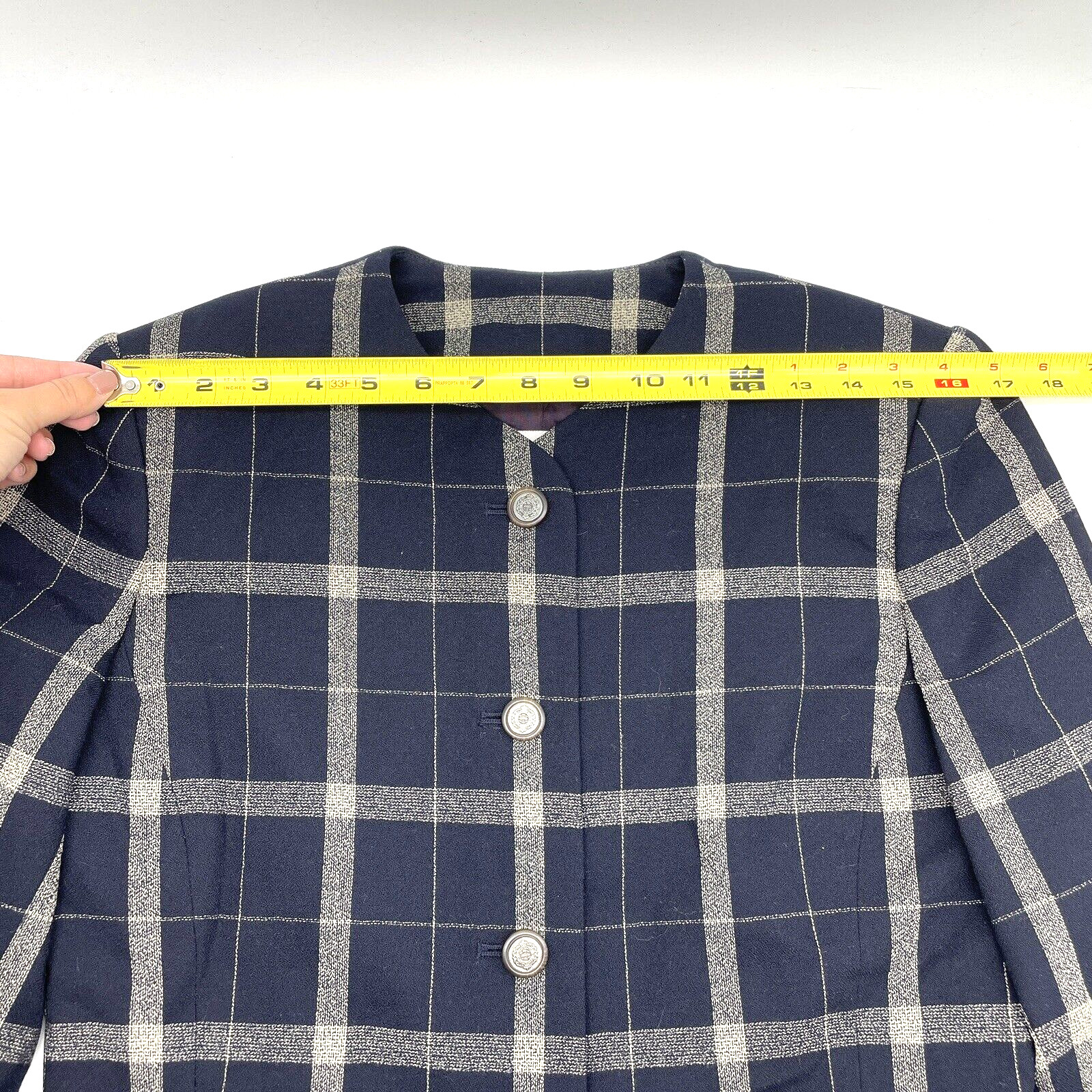 Vintage Kasper Co ASL 100 Wool Blue Windowpane Plaid Blazer Women's Size 6