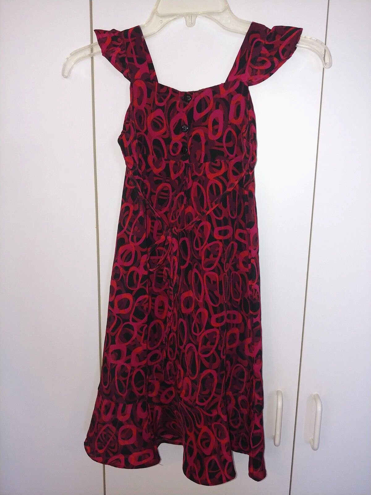EMILY WEST GIRL'S SLEEVELESS RED/BLK HIGH-WAIST POLYESTER DRESS-10-WORN ONCE
