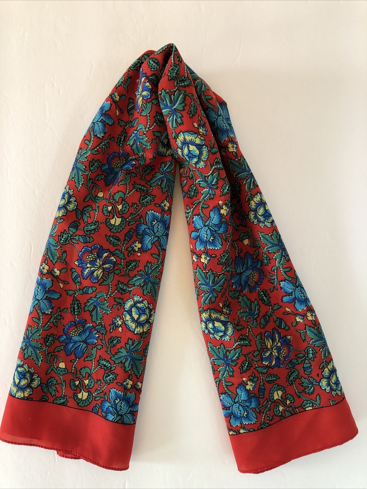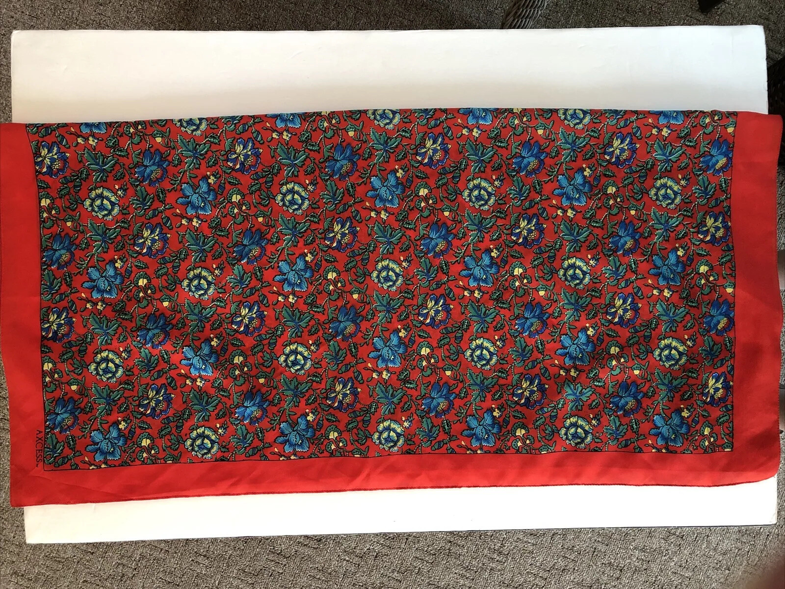 как выглядит AXCESS Womens Floral Scarf 30" Square Red Background W/Blue-Green-Beige Flowers фото