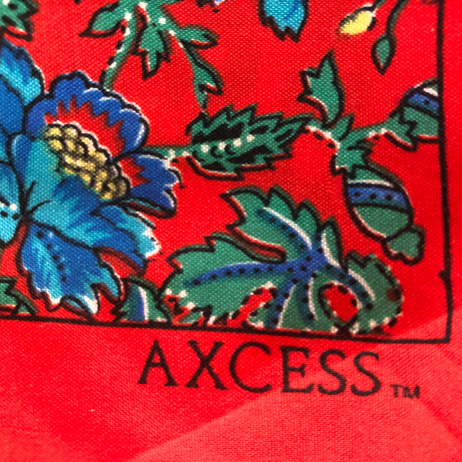 AXCESS Womens Floral Scarf 30 Square Red Background W/Blue-Green-Beige Flowers