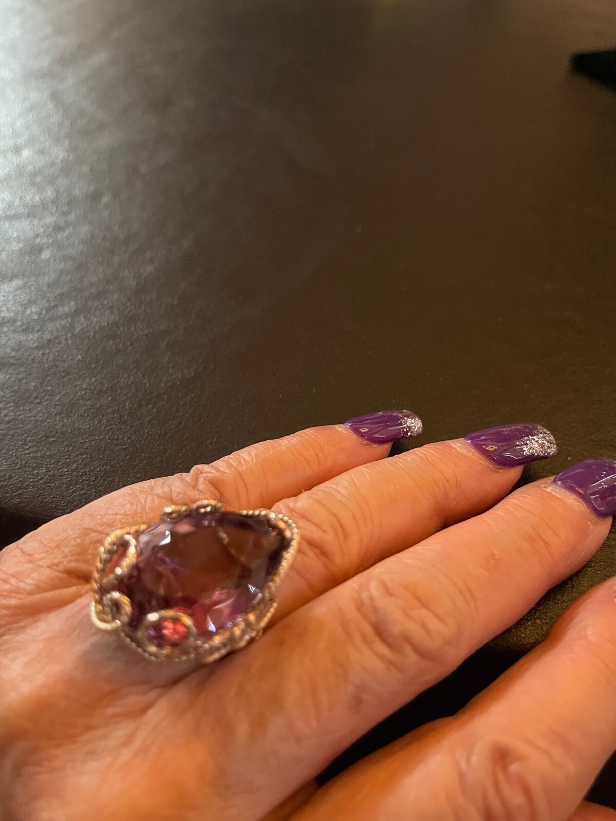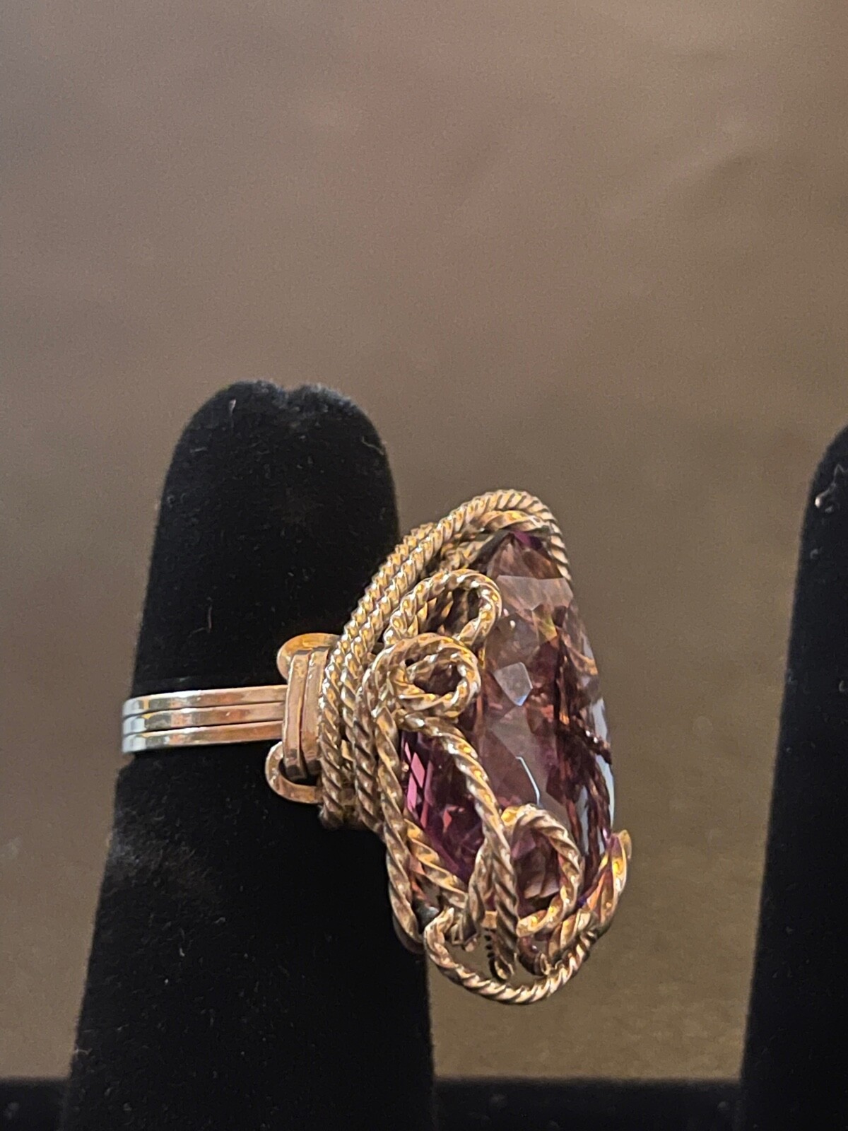 как выглядит Sterling Silver Large Faceted Amethyst wire wrapped ring фото
