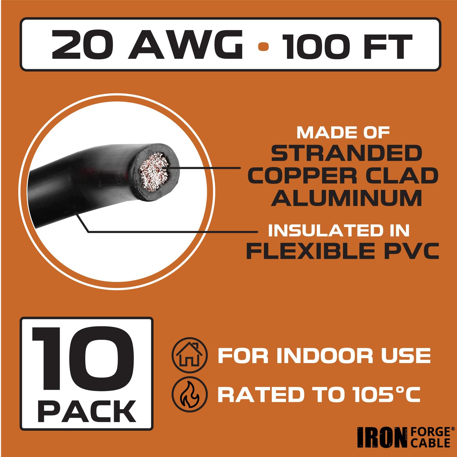 20 Gauge Primary Wire - 10 Roll Assortment Pack - 100 Ft of Copper Clad Aluminum
