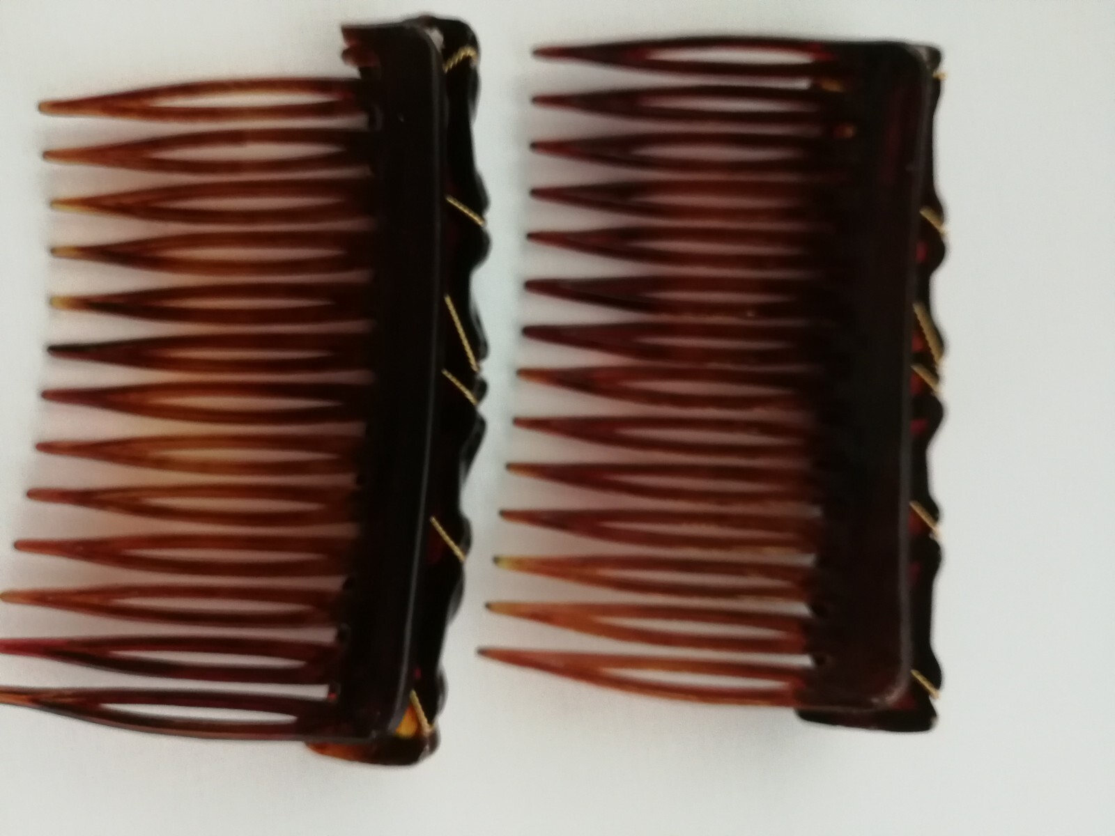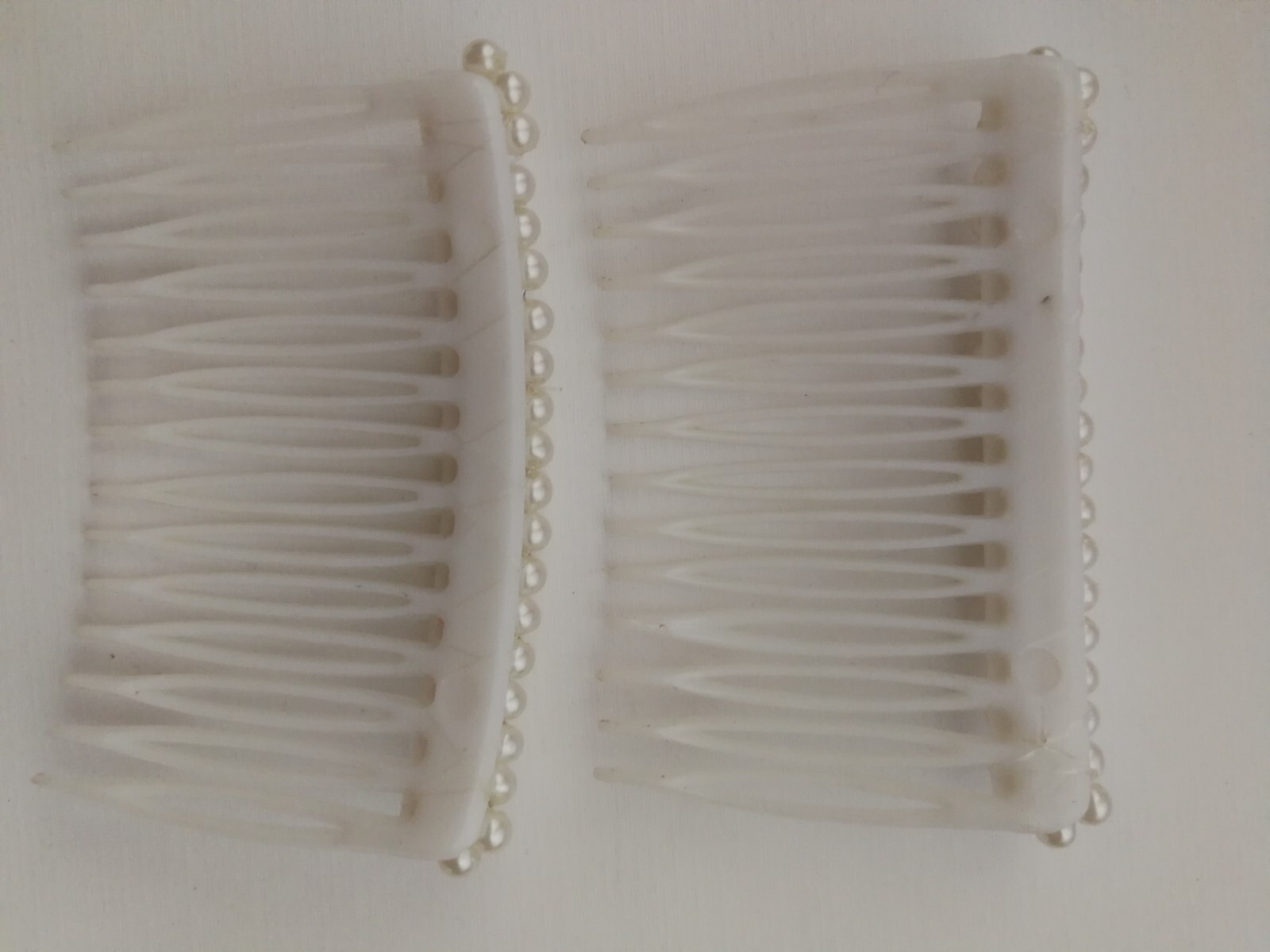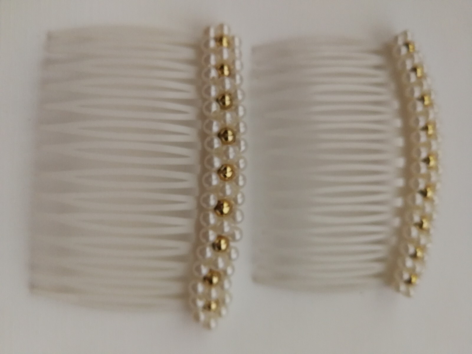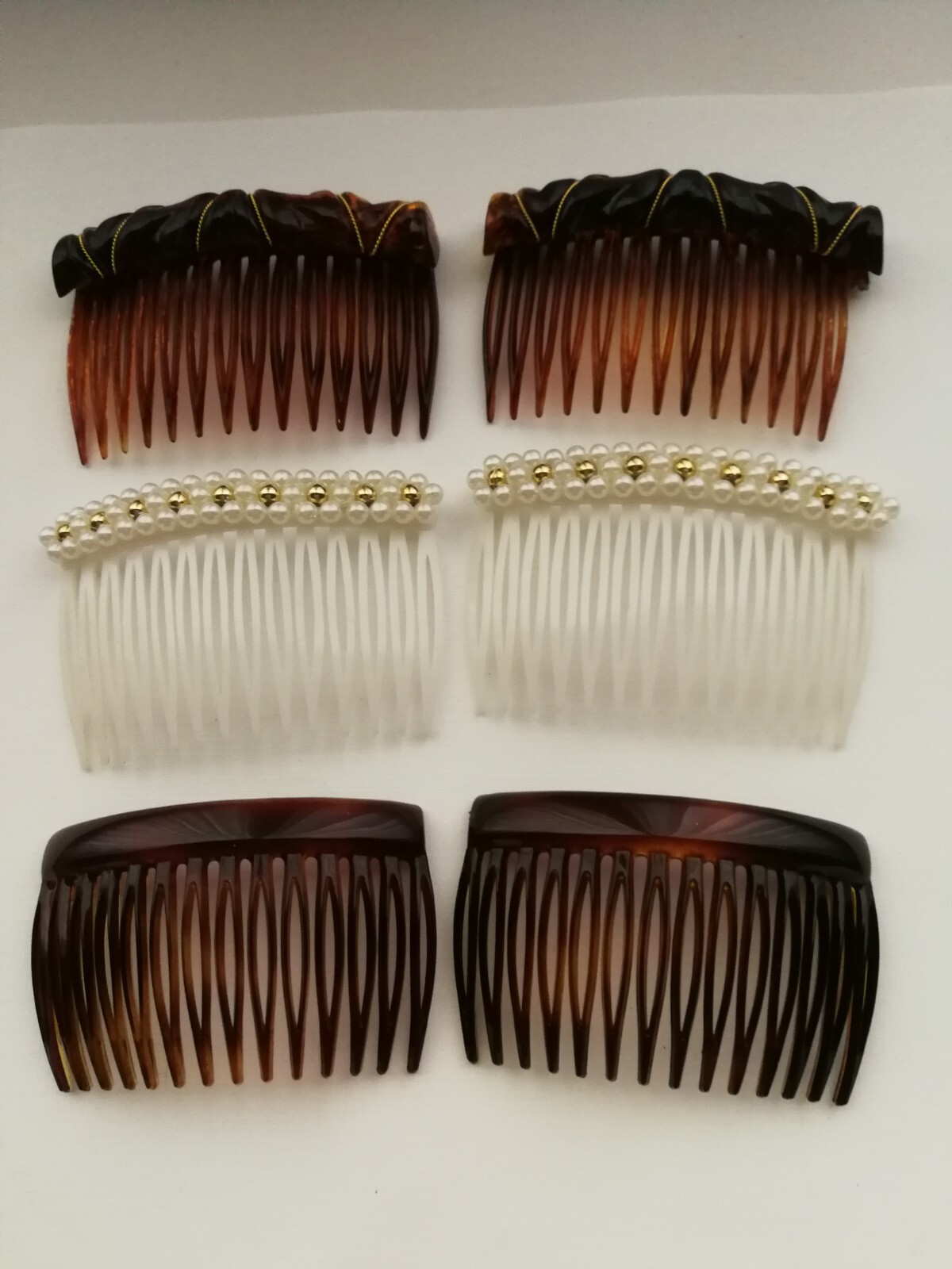 как выглядит Vtg Pair Hair Combs Lucite Faux Tortoise Shell or White Faux Pearl France фото