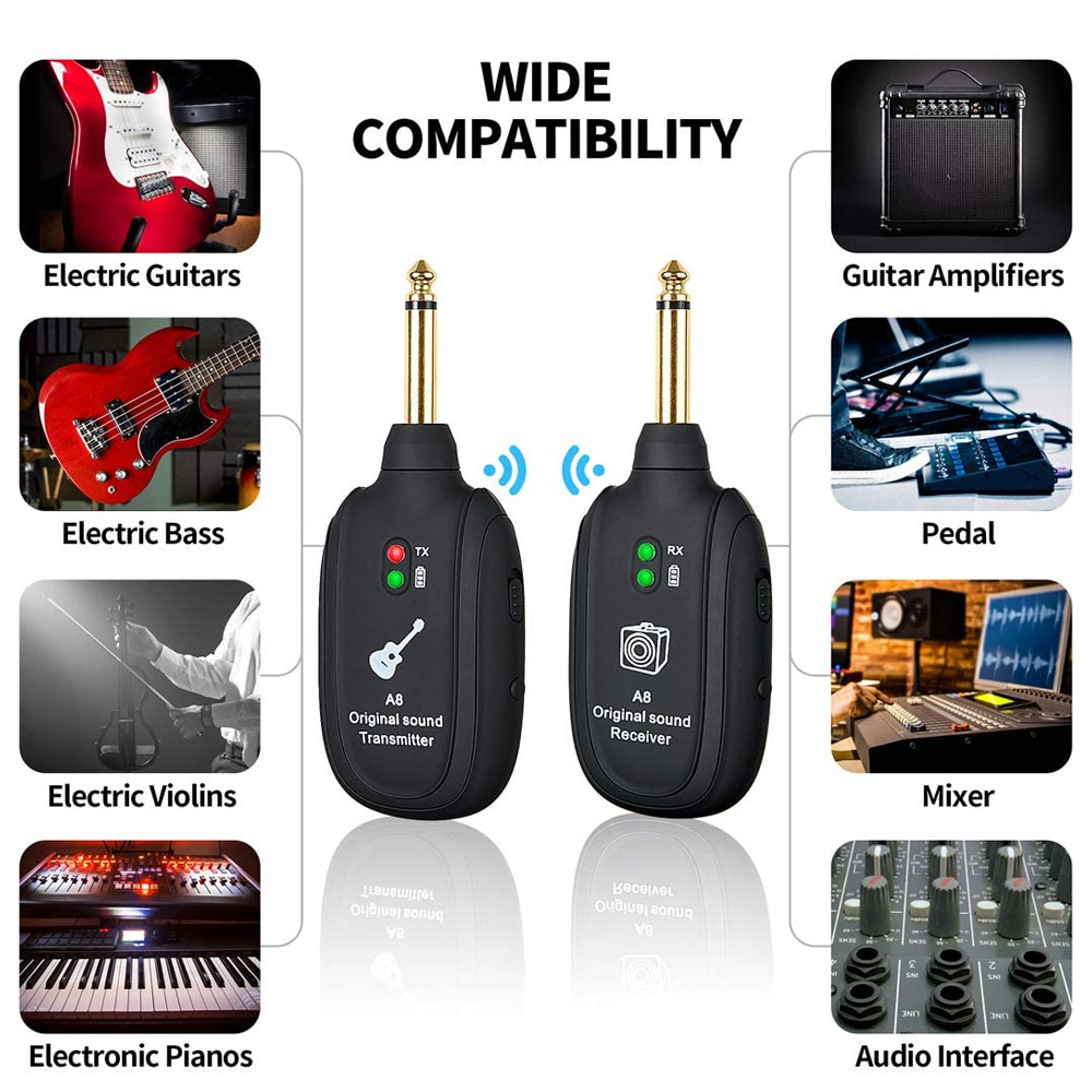 Guitar Wireless System Transmitter Receiver Built-in Rechargeable Battery Bass