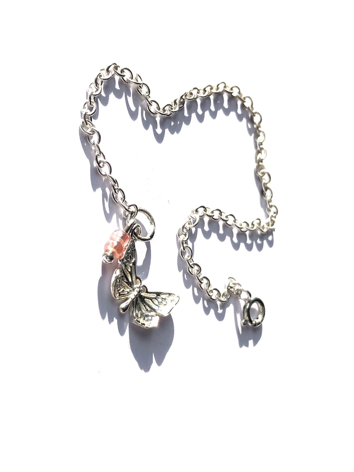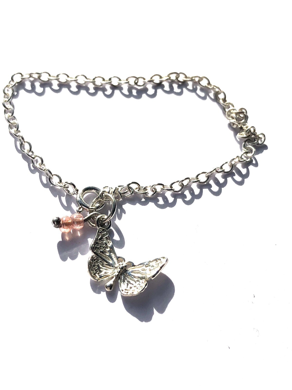 Sterling Silver Bracelet With Butterfly Pendant Childs Bracelet