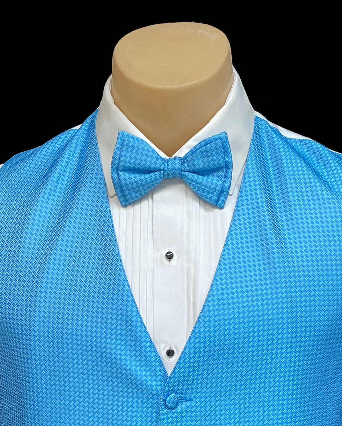 Men's Larr Brio Blue Tuxedo Vest Tie Bow or Long Wedding Groom Prom