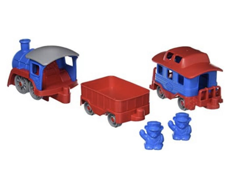 Train Set Green Toys 100 recycled Plastic, train set blue red with 6 pieces New