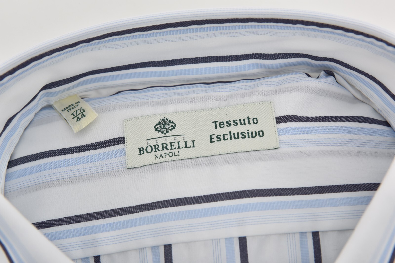 как выглядит NWT LUIGI BORRELLI White Blue Striped Cotton Classic Fit Dress Shirt 17 1/2 44 фото