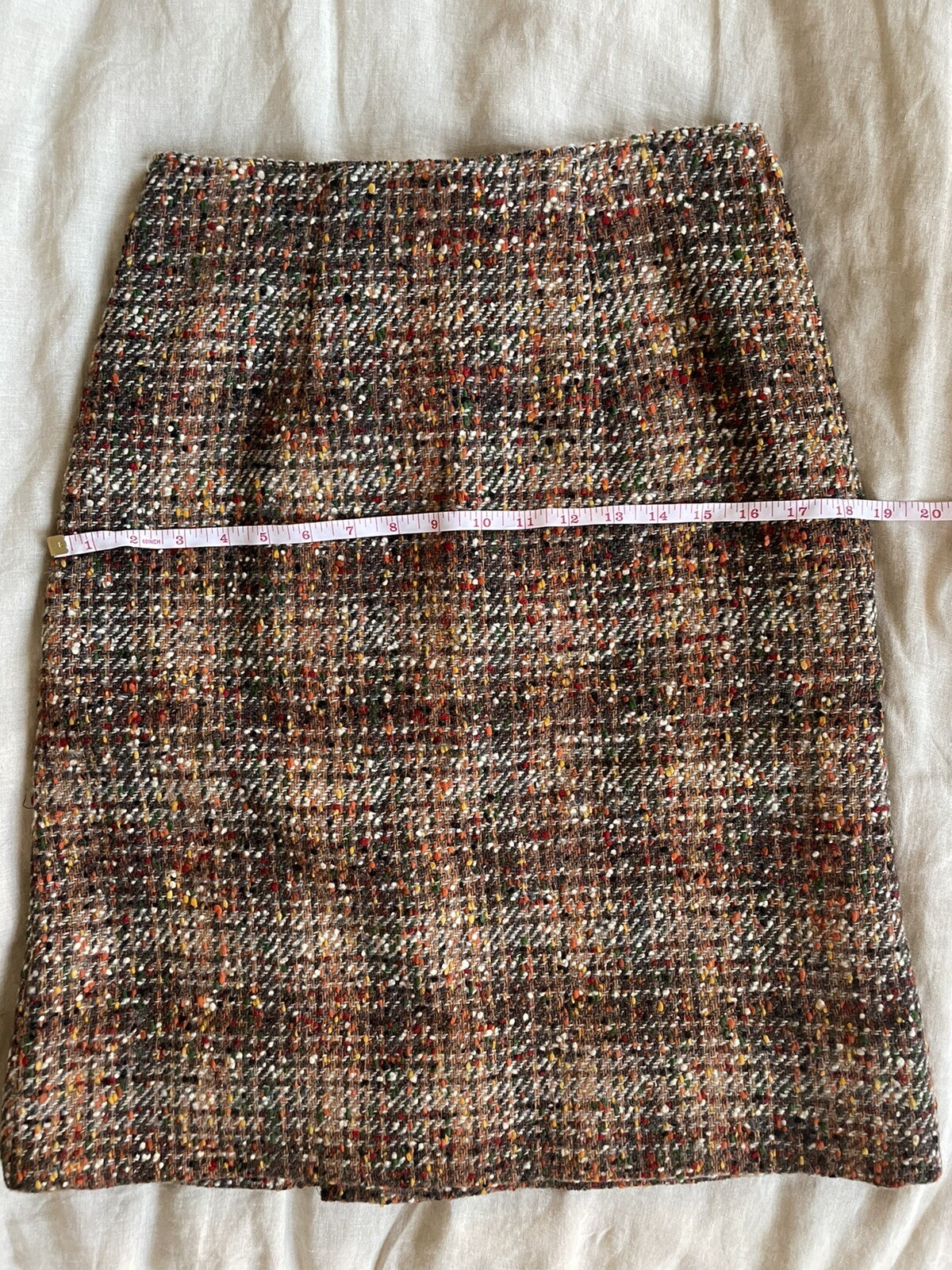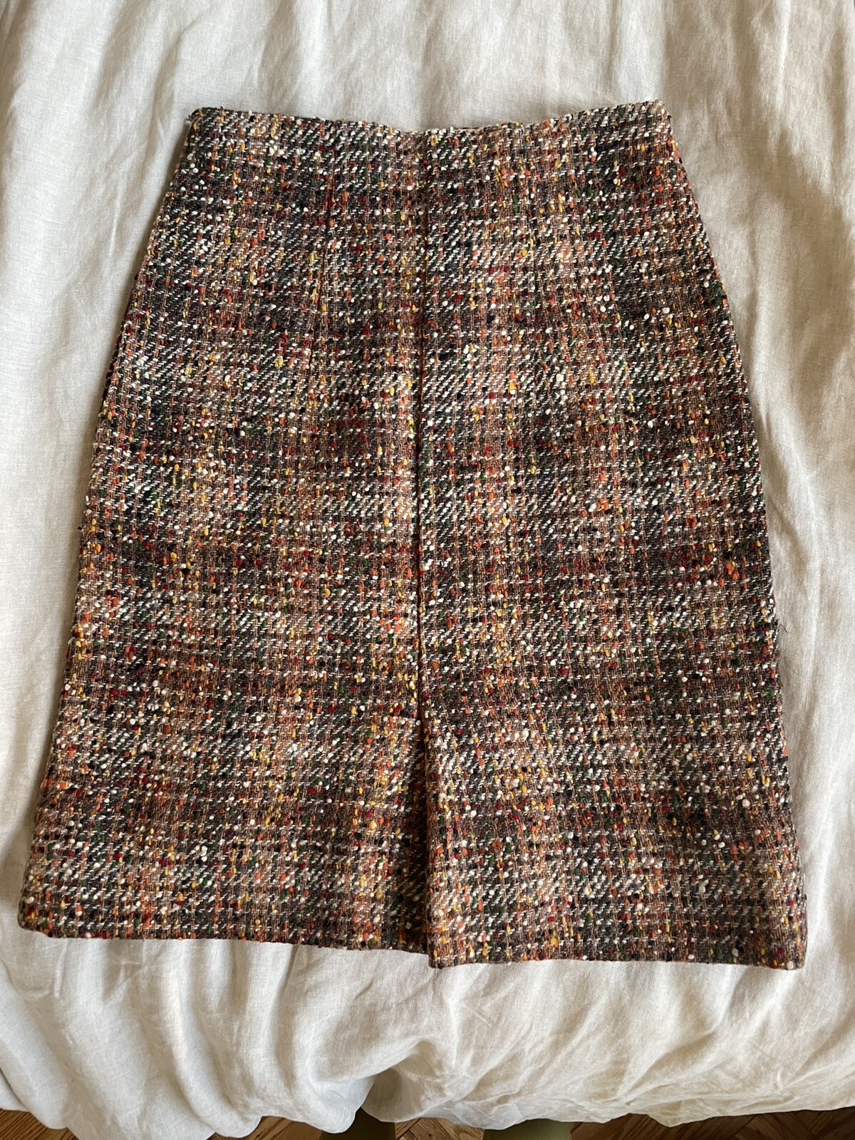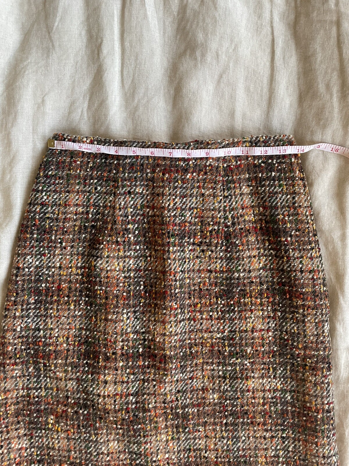 как выглядит vintage 70s thick wool woven textured multi color knee length skirt workwear S фото
