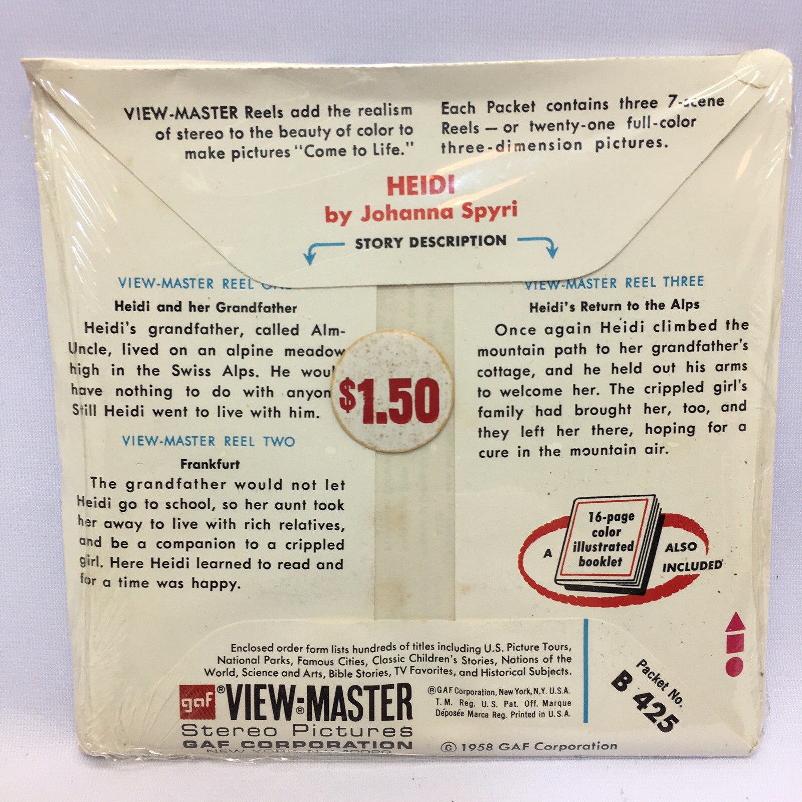 View Master 3 Reels Slides Heidi / Johanna Spyri B425 New Sealed Old Stock 1958