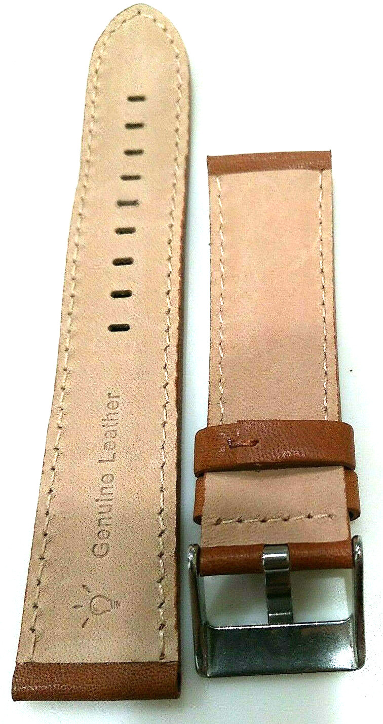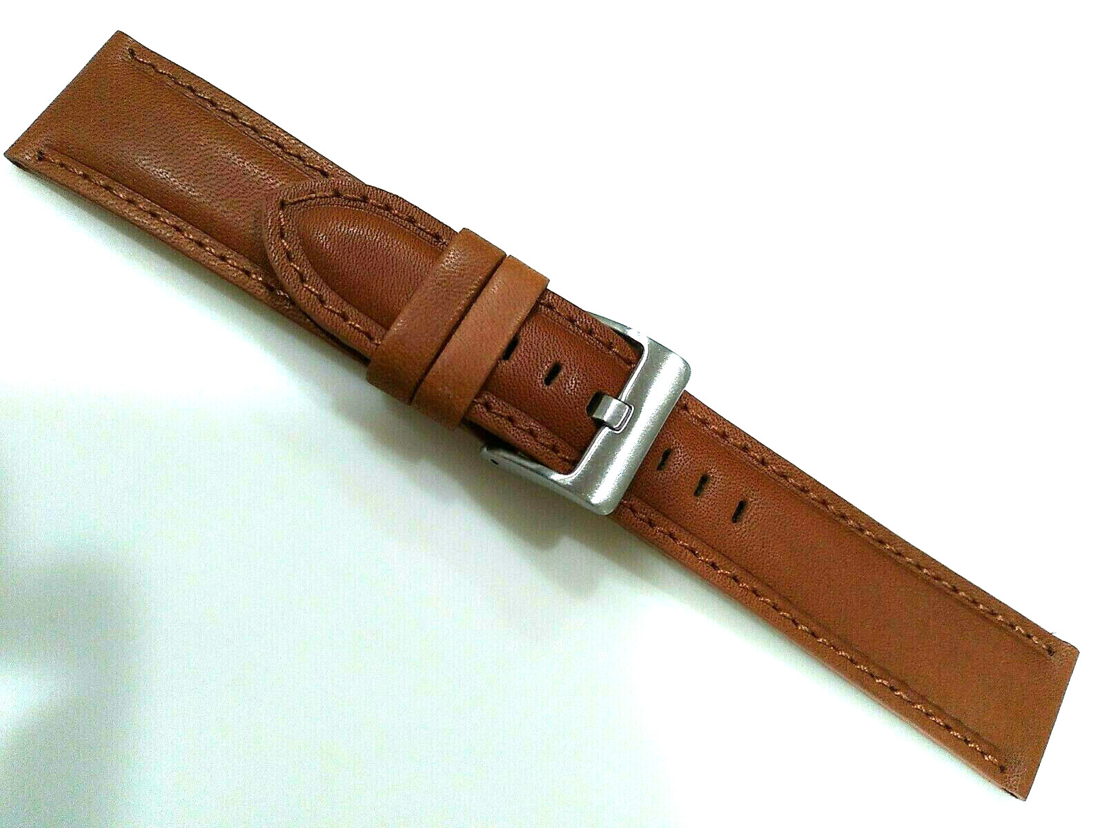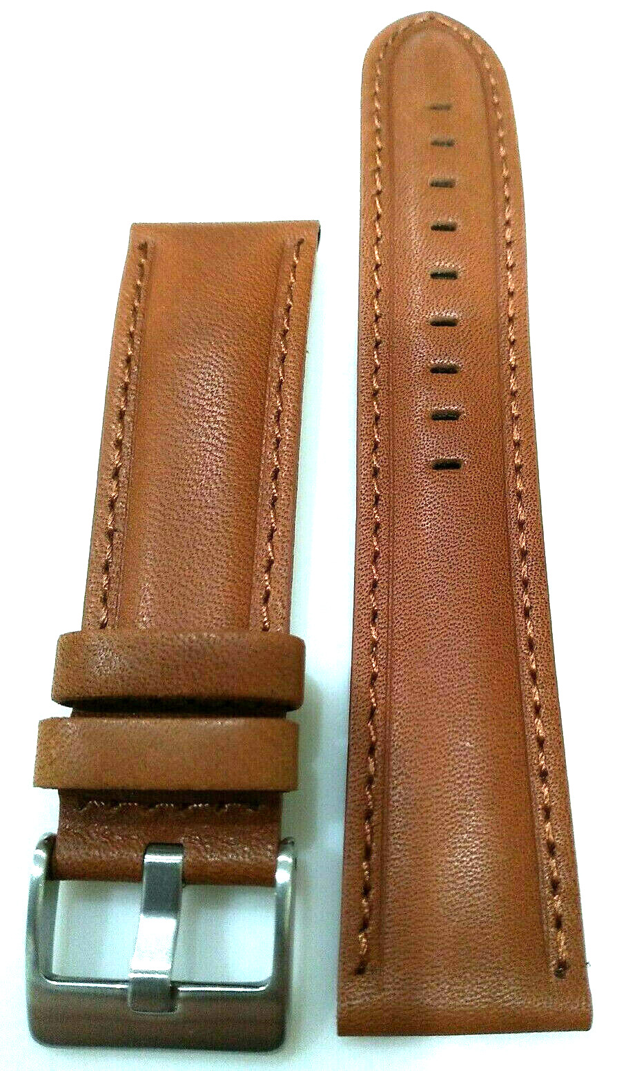 Caramel Lt Brown Padded Genuine Oil Leather 22mm Watch Band Satin Nickel Buckle