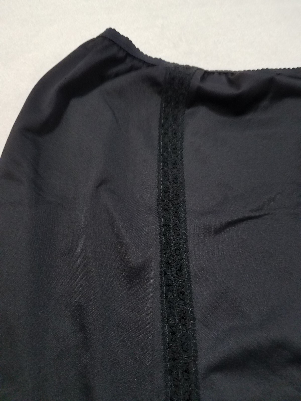 как выглядит Vintage Shadowline Black Lace Trim Half Slip Side Slit Size Medium Made in USA фото